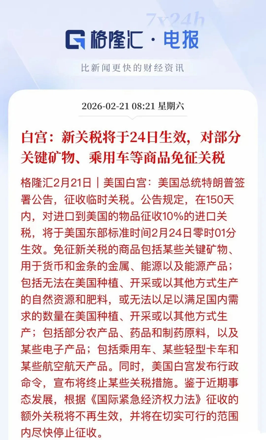 掐的真准啊,2月24日生效,就等A股开门,然后再搞事情,违宪的关税和新增加的适用的条款都不一样,人家整出了旧违法和新合法的一个替代关系