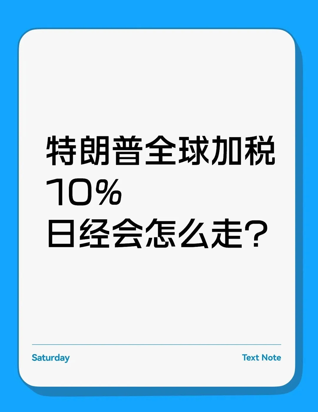 特朗普全球加税10%,日经会怎么走?投资需要情绪稳定,三观正确。激进操作养成习惯的话,靠运气赚的,会因实力再还回去,今天赚钱炫耀开心,明天止损就沉默沮丧,利益=止盈-止损。2月20日,特朗普签署行政令:全!球!加!税!10%! 作为出口大国的日本,日经指数瞬间成了全场焦点。这波“关税炸弹”到底怎么炸?是危还是机?1. 日经指数:先反弹、后跳水?昨天的盘面真的像坐过山车!• 上半场: 最高法院判定此前的关税政策“违法”,日经一度欢呼拉升,大家以为警报解除了。• 下半场: 特朗普反手一个“122条”新政,10%全球加征关税。日经应声走弱,出口权重股集体“心肺停止”。🚗 2. 谁最受伤?• 传统汽车巨头(某些田): 虽然日本在美有工厂,但大量高端零部件仍靠进口,10%的成本转嫁压力极大。• 钢铁/铝/铜: 别忘了这三个“倒霉蛋”本身就有232条款的高关税,现在叠加10%,利润空间被极限压缩。所以喜欢做这种票票的同学,一定不能只看铜期货,这种关税新闻影响更大。如果回撤比较大,某JX我就又要出手了,毕竟这个新关税只有100多天时效。不过,有色我一般只做金银。• 日元升值: 贸易战一旦升级,日元作为避险货币可能走强。日元升 = 日经跌,这对出口导向型的日本股市是二次伤害!3. 哪个板块可能豁免?并不是所有日本货都要交这笔钱!以下板块最稳:• 民用航天(三某、川某): 符合WTO框架的航空零部件通常是“免死金牌”。三某还有个即将全球发酵的概念,燃气轮机。这里就不阐述了。• 医疗制药: 美国离不开日本的原料药和仿制药,豁免概率极高。• 半导体设备: 虽然有摩擦,但美日协议给了日本“最惠待遇”,东某电,爱某万等大佬相对抗跌。操作看点:如果你手里有日经ETF或个股,现在最关键的是观察2月21日-22日的谈判动向。• 关键看点: 日本政府是否会用“增加对美投资”来换取特定产品的豁免。• 心理价位: 关注日经指数在这一波冲击下的支撑位,别在恐慌中割肉,也别盲目满仓。老川这波“闪电战”到底是救美国还是坑队友?日经能否挺住?评论区留下你的看法!日经 加税日本股市