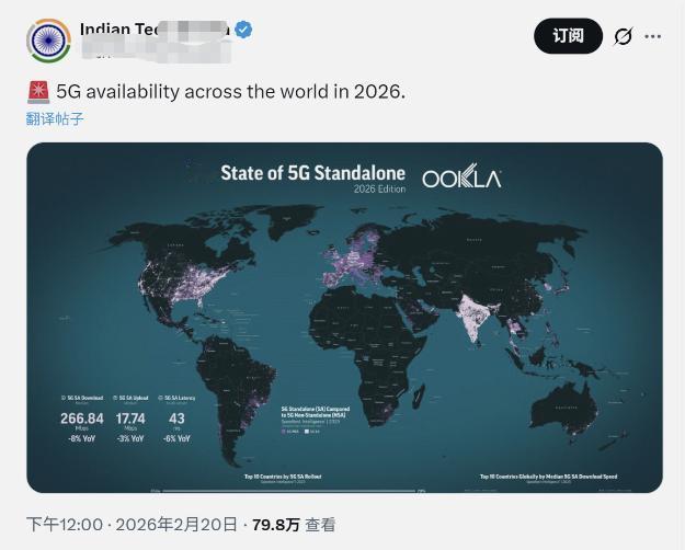 印度又在全世界人民面前闹笑话了。 印度一个机构,在网上发了张地图。说的是2026年全球5G网络普及的情况。在这张地图上,印度自己那片地方,画得特别亮,颜色很深,意思是5G很普及。 可你再看看中国和俄罗斯那块地方,地图上颜色浅得几乎看不见,跟“无人区”似的。这张图一发出来,好多人都看到了,阅读量有80万。 大家一看就乐了。印度5G咋样,咱们先不说。可中国5G建得怎么样,全世界都知道,那是数一数二的。这张图把中国画得那么落后,明显不对头。 为啥会这样?有懂行的网友出来说了。这张图可能统计的是5G独立组网,就是完全新建的5G网络。但很多国家,包括中国,为了省事省钱,用的是非独立组网,也就是在原来的4G网上改造升级。用起来都是5G,但统计标准不一样。 还有网友说,画这图的公司,用的数据可能主要来自他们自己的测速软件。但这个软件在中国和俄罗斯没多少业务,数据自然就少。数据少,地图上显示的颜色就浅,看起来就像没有一样。 这就好比用一把尺子去量全世界,但这把尺子在某些地方根本没人用。那你量出来的结果,能准吗? 所以这事,说白了就是统计方法有问题。用自己的标准去衡量全世界,结果闹了笑话。印度自家机构画的地图,把自己捧得高高的,把别人压得低低的,看着是挺“亮眼”,但没什么说服力。 真正的5G情况,大家心里都有数。咱们该用用,该发展发展,一张有偏差的地图,影响不了啥。就当看个乐子吧。 对此,你怎么看?