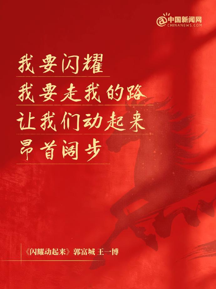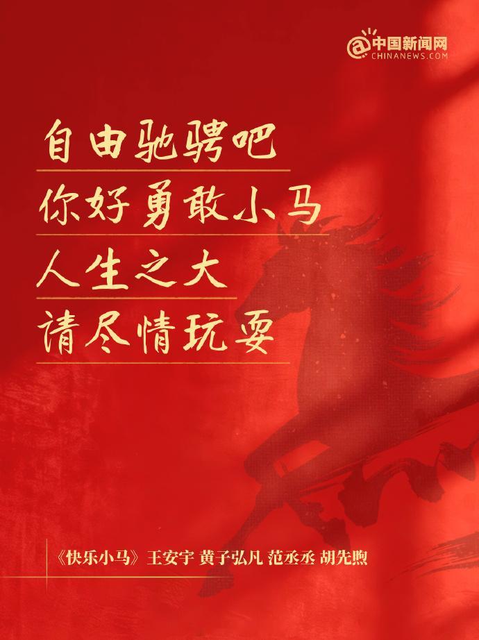 【分享!哪首歌是你的马年春节主打歌】“我要闪耀,我要走我的路”“自由驰骋吧,你好勇敢小马”“愿岁岁安康,愿年年欢畅”……这些春晚歌曲陪我们过假期,查收 等人的歌词海报,你最喜欢哪一首?