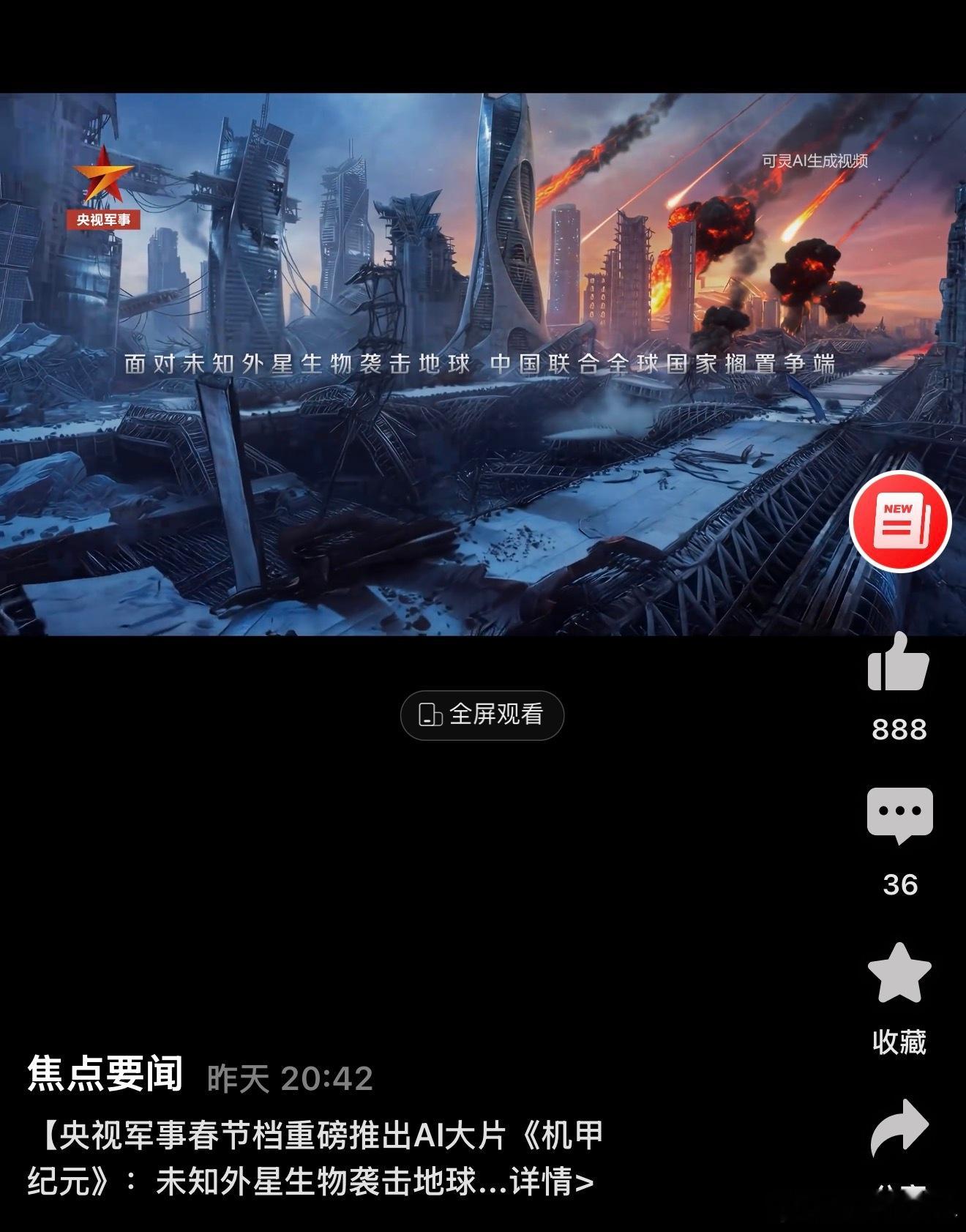 a股ai应用AI应用春节 【央视军事春节档重磅推出AI大片《机甲纪元》:未知外星生物袭击地球 中国联合全球国家搁置争端 实施抵抗】