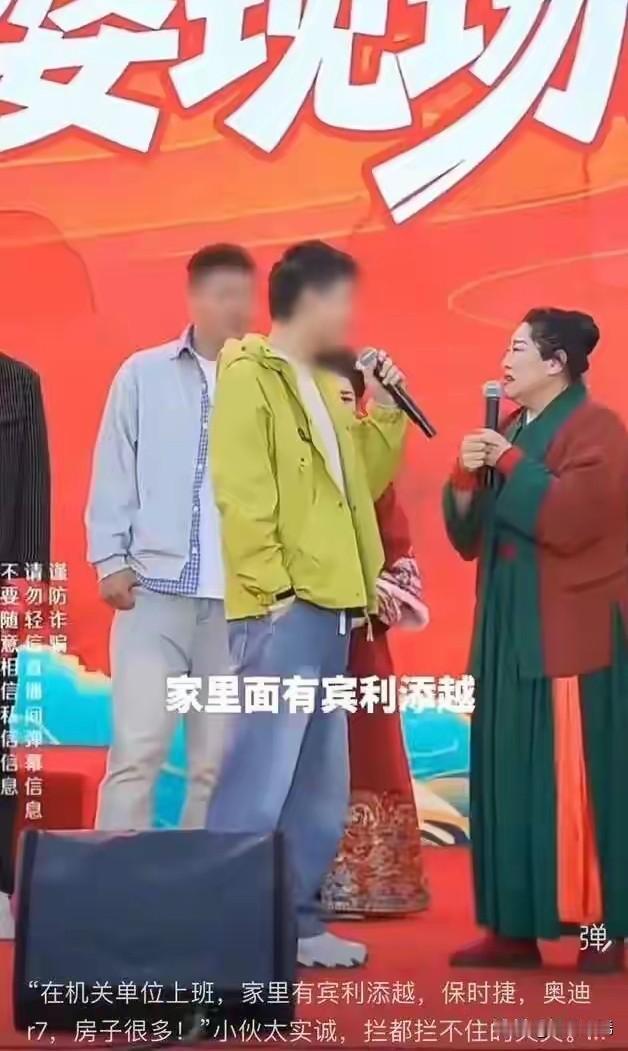 在热门相亲活动“王婆说媒”现场,一名男子当众高调炫富,引发网友热议与质疑。他自称在机关单位工作,家中有宾利、保时捷等豪车,还拥有多套房产,言语间十分张扬。此事迅速发酵,当地相关部门已介入,正对其身份、工作与资产情况展开全面核实。 相亲本应真诚为先,靠夸大财富、包装身份博眼球,既不尊重他人,也有损公共形象。这种浮躁的炫富风气不可取,真相很快会水落石出,弄虚作假最终只会自食其果。