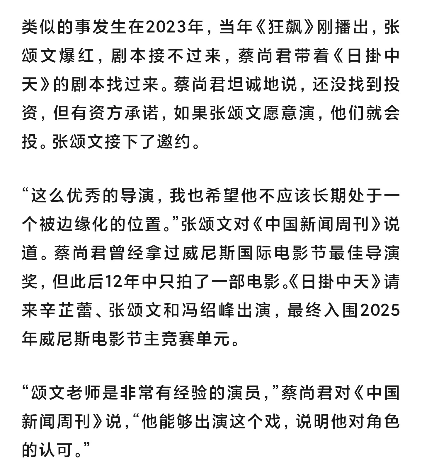【张颂文接演日掛中天原因】张颂文重要场合穿前经纪人旧衣真的会被的真诚感动。他仍然留着前经纪人的衣服,而且重要时刻会穿。他因为淋过雨,也会给很多年轻导演撑伞。(中国新闻周刊)