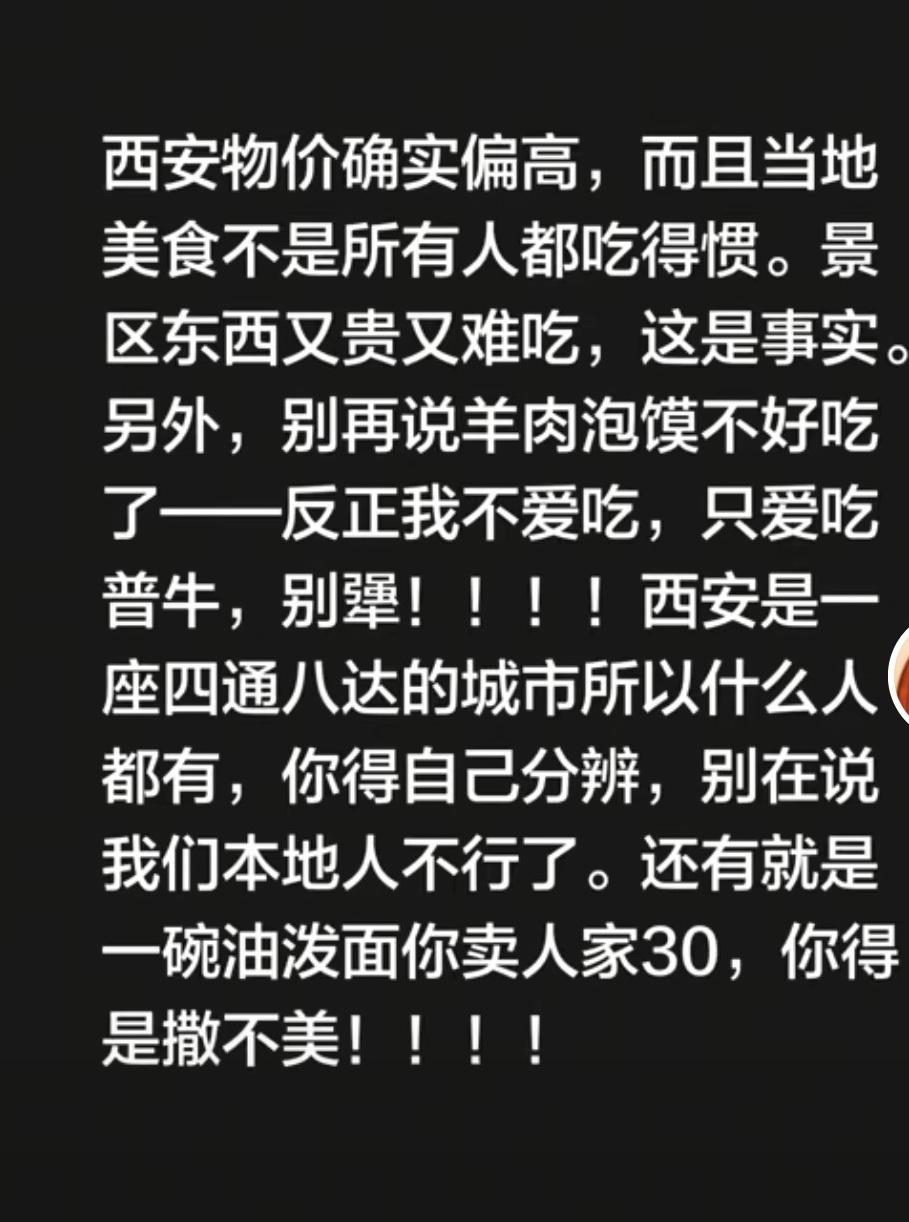 【西安很好,再也不去了?】大过年的,刷着手机本来图个乐呵,可看着看着,心里真有点不是滋味。最近老刷到一些来西安旅游的朋友拍短视频,标题一个比一个狠——“西安到处都是坑,再也不来了”!点进去一看,吐槽的啥都有:人太多、吃饭贵、点个肉夹馍连张纸都不给…… 说实话,咱们西安人看了挺难受的。有些意见确实是真话,服务不到位的地方我们虚心听、认真改,但有些,真的就只是情绪,冲着流量来,硬是把自己“委屈”成了段子。可我们想说:西安,真的没那么不堪。 人多?确实多。可大家来之前,刷一刷手机,大雁塔的人流、大唐不夜城的拥挤,视频里都摆在那儿,一眼就能看到。咱也是个大城市,常驻人口上千万,大家都想趁着春节来感受一下长安的年味。挤,是真实的,也是大家都看得到的——可还是要来,挤完了就骂,那我们该咋办?难不成过年期间,西安得给游客“清场”才算有诚意? 说物价贵?这我们不反驳,景区周边,确实啥都不便宜。可咱西安,不光只有回民街、洒金桥啊。走两步,坐几站地铁,有的是本地人从小吃到大的馆子,商场里餐饮明码标价、童叟无欺,您不去,非要扎堆儿挤在小吃街排半小时队,那到底是“被坑”还是“选坑”,咱心里都有一杆秤吧。 再说陕历博约不上票,这事儿我们市民也想诉个苦——真的不是专门不给外地朋友,我们自己也约不上啊!一年四季,票就那么些,想看也得拼手速。咱西安人有个不成文的“约定”:逢年过节,不去热门景点,把地方腾出来让给游客。我们都记着呢,也一直在照做。 所以,看那些带着情绪拍视频、对着镜头说“这个破城市再也不来了”的游客,我们想说的是—— 西安有很多不足,但我们真的在努力。如果某些体验没达到您的预期,我们可以诚恳地说声抱歉。但也请您别轻易给一座城市贴标签。 因为就在那些您抱怨的地方不远处,正有无数西安人悄悄绕道而行,只为了让您走得更顺一些,看得更舒心一些。这个春节,愿您在西安不只是看到了人山人海,也能感受到这座城市的善意。如果不小心踩了“坑”,也请相信,那从来不是西安的本意。