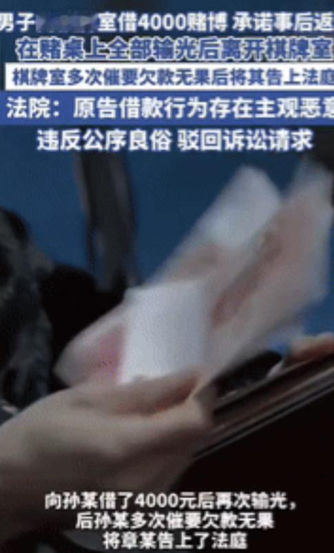 “白嫖成功了!”江苏一男子在棋牌室把钱输光后,向老板借了4000元继续玩,承诺事后返还,不料,男子在牌桌上又输了个精光,随后大摇大摆的离开了棋牌室,老板多次催促男子还钱无果后,将男子告上了法庭,法院这样判了! 事发的棋牌室开在当地居民楼下,已经安安稳稳经营了好几年,老板王某是个实在人,不玩那些花里胡哨的套路,做的大多是周边居民的熟客生意。 平日里来店里打牌的,不是楼上楼下的邻居,就是附近小区的老街坊,大家抬头不见低头见,相处得都挺融洽,四十多岁的张某,就是这家棋牌室的常客,差不多每周都会来个两三次,有时候是下午过来玩几个小时,有时候是晚上约着几个牌友凑一桌,一来二去,不管是老板王某,还是店里其他常来的牌友,都跟他很熟。 张某平日里在牌桌上的样子,看着就像是经济条件不错的人,出手向来大方,赢了钱的时候,总会主动给大家买水、买烟,从不吝啬;就算是输了钱,也从来不会面露难色,更不会跟人斤斤计较,哪怕输得不少,也能笑着说下次再赢回来。 也正因为这样,在常来的牌友眼里,张某一直是经济条件宽裕、为人爽快的形象,老板王某对他也格外信任,别说借个几百块,就算是上千块,只要张某开口,王某几乎不会犹豫。 毕竟相处了这么久,张某之前也有过应急借钱的情况,每次都能按时还上,从来没有拖欠过,可这一次,王某却栽了。那天下午,张某像往常一样来到棋牌室,找了几个熟客凑了一桌开始打牌。一开始张某的手气还不错,赢了几百块,脸上一直挂着笑,可没过多久,手气就急转直下,不管怎么出牌都不顺,输的钱越来越多,没一会儿功夫,身上带的几千块现金就全部输光了。 输光钱的张某,脸上没有了之前的从容,反而多了几分急躁,他盯着牌桌看了一会儿,不甘心就这么输完离场,于是就起身找到了老板王某,搓着手说自己输光了,想向他借4000块钱继续玩,还拍着胸脯承诺,等打完牌就把钱还给他,就算当天输了,最晚第二天也会把4000块钱送过来,绝不会拖欠。 王某看着张某着急的样子,又想着两人这么熟,而且张某之前的信誉一直很好,没有多想就答应了,随手从柜台里拿了4000块现金递给了张某,也没让他写借条,只是口头说了一句记得还钱。 毕竟在他看来,这么多年的熟客,没必要搞得那么生分,可他没想着,这一不留神,就少了最关键的凭证。张某拿到钱后,急匆匆地回到牌桌前,想着能借这笔钱翻本,可运气这东西,一旦差起来就没那么容易好转。他拿着借来的4000块钱,小心翼翼地出牌,可还是频频输牌,没过多久,这4000块钱就又输了个精光,一分都没剩下。 输光了所有钱的张某,脸上的急躁渐渐消失了,取而代之的是一脸的平静,他站起身,拍了拍身上的灰尘,跟牌桌上的几个人打了个招呼,就大摇大摆地离开了棋牌室,全程没有提一句借钱还钱的事,甚至都没有多看老板王某一眼。 王某当时还想着,张某可能是输急了,心情不好,等缓一缓就会过来还钱,也就没好意思拦住他追问。可王某左等右等,一连等了好几天,都没等到张某过来还钱,也没收到张某的任何消息,张某甚至都没有再去过棋牌室。 王某心里开始有点着急了,于是就试着联系张某,可不管是发消息还是打电话,张某要么不回复,要么就是敷衍几句,说自己手头紧,再缓几天,可始终没有提具体什么时候还钱。 就这样,王某一次次催促,张某一次次敷衍,拖了一个多月,始终没有还一分钱,到最后,张某干脆不接王某的电话,也不回他的消息,彻底失联了。这时候王某才意识到,自己可能是被张某“白嫖”了,这4000块钱说不定就打水漂了。 王某越想越生气,自己好心借钱给张某应急,可张某却翻脸不认人,赌输了钱就拍屁股走人,还故意失联拖欠不还。 思来想去,王某觉得不能就这么算了,于是就收集了相关证据,一纸诉状将张某告上了法庭,要求张某返还自己借给他的4000块钱,并且承担此次诉讼的相关费用。 庭审的时候,王某当庭陈述了事情的经过,还拿出了自己和张某的聊天记录、通话录音,证明自己确实借了4000块钱给张某。 可张某却没有出庭应诉,也没有提交任何答辩意见,仿佛这件事跟他没有关系一样。很多人都以为,王某证据确凿,法院肯定会判决张某还钱,可最后的判决结果,却出乎了所有人的意料。 法院经过审理查明,张某向王某借款4000元,确实是用于棋牌室打牌赌博,而王某作为棋牌室经营者,明知张某借款是用于赌博,仍然向其提供借款,助推了赌博行为的发生。 根据相关法律规定,出借人事先知道或者应当知道借款人借款用于违法犯罪活动仍然提供借款的,民间借贷合同无效,不受法律保护。最终,法院判决驳回王某的全部诉讼请求,也就是说,王某借出去的4000块钱,要不回来了。 这个判决结果出来后,王某当场就懵了,他怎么也没想到,自己好心借钱,最后竟然落得个竹篮打水一场空的下场。