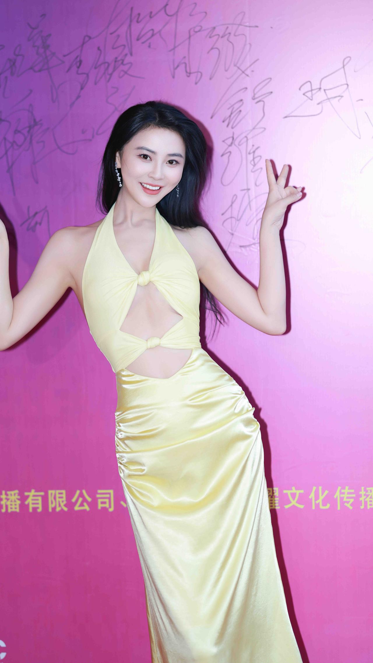 环球小姐冠军吴丹颁奖典礼.黄色礼服性感靓丽港风港风气质