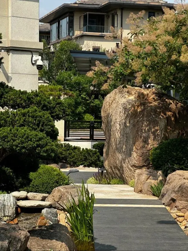 真正的高端居住体验,是回家即度假的松弛感。The courtyard is the ultimate romance of a luxury mansion 看过无数别墅,还是被这样的庭院狠狠拿捏: 没有繁复的堆砌,只用大块景石、原生绿植和极简汀步,打造出低调又有质感的空间。 清晨在鸟鸣中推开窗,看阳光洒在石径上; 傍晚坐在露台,听流水潺潺,晚风拂面。 在这里,生活慢下来,心境静下来。 这才是理想中“有天有地”的别墅生活啊~