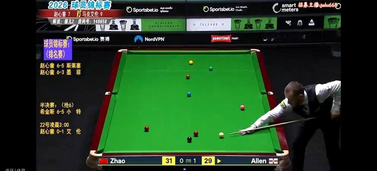 1-3落后,对手5-4手握赛点,赵心童距离出局就差临门一脚。 北京时间凌晨,斯诺克球员锦标赛半决赛,赵心童对阵马克·艾伦。上半场几乎被压着打,中场休息回来,他好像换了个人。 单杆140、103分直接砸出来,硬生生把比分扳平。决胜局更是顶住巨大压力,以6-5完成惊天逆转,全场两杆破百三杆50+。 这已经不是那个只会顺风球的赵心童了。从首轮2-5落后翻盘,到半决赛决胜局绝杀,他打的不再只是准度,更是心态。 复出后,他进决赛的胜率还是100%,这次对阵希金斯,就看能不能延续这个记录。