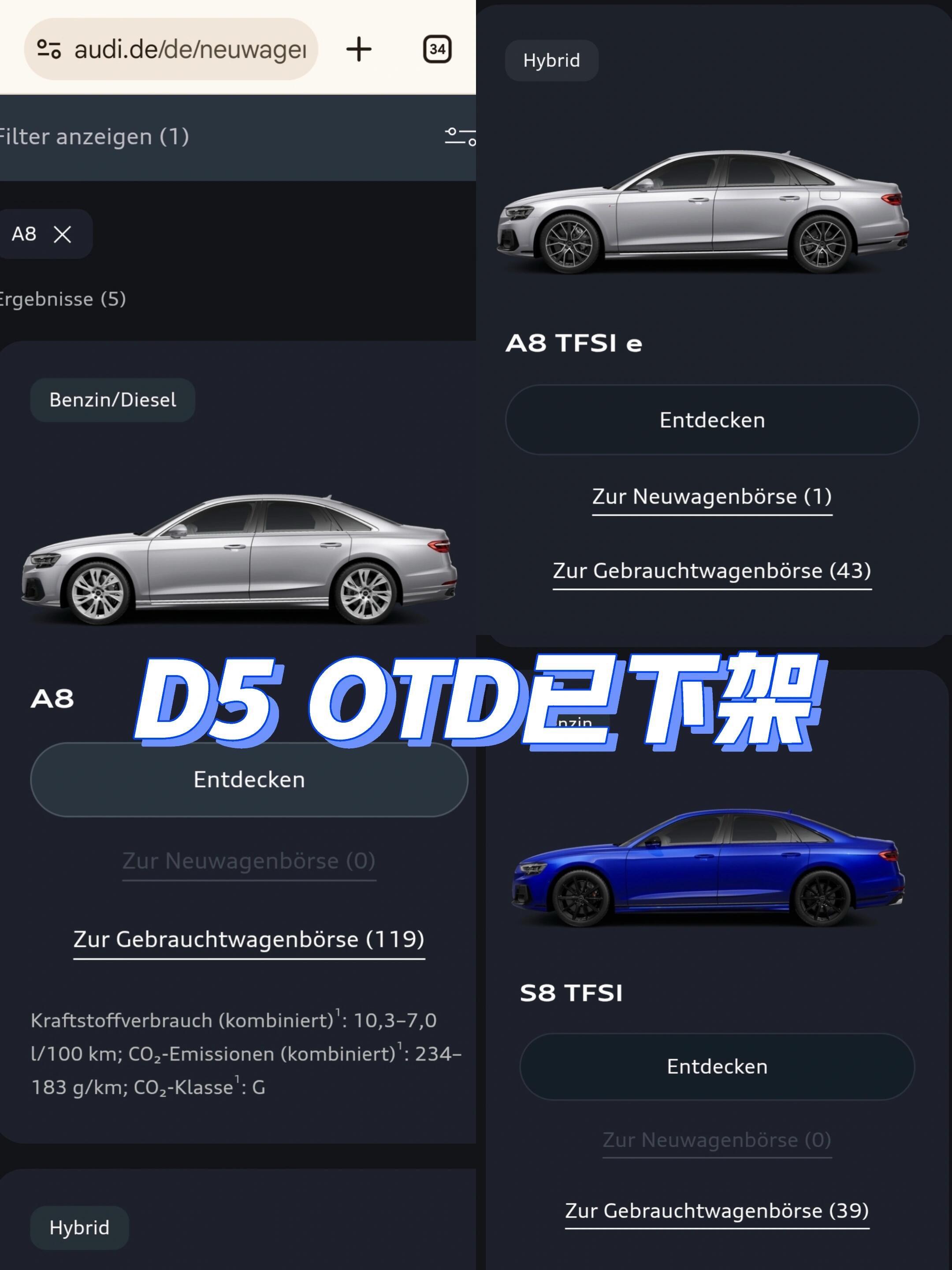 A8并不会停产。最新消息,说个和数字6有关的消息,奥迪已决议!A8 D6将基于MSB61w平台生产!