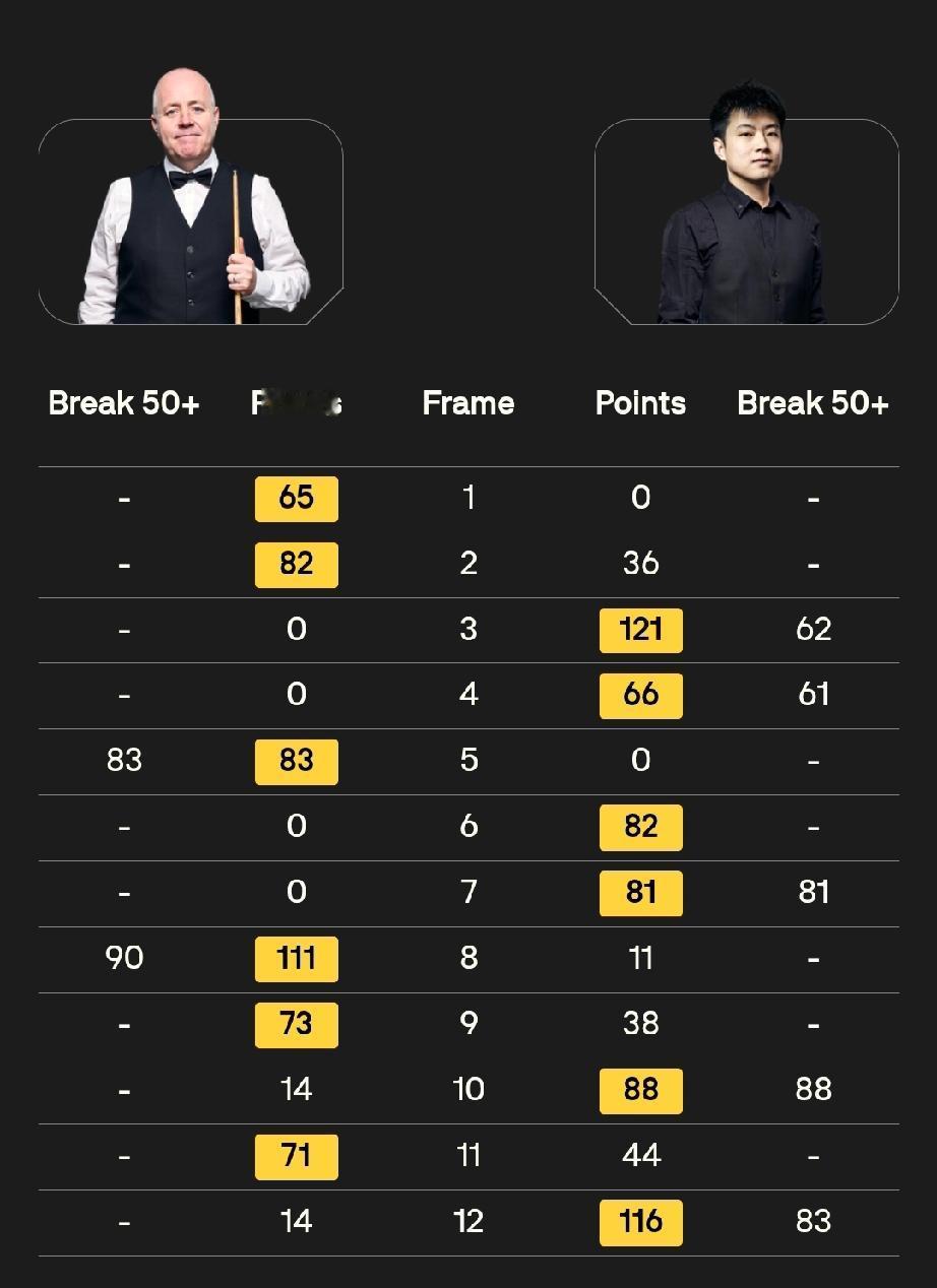 斯诺克球员锦标赛决赛,前12局双方发挥正常,比分交替领先! 赵心童打出5杆单杆50+、希金斯打出2杆单杆50+! 比分6-6战平!先到10者将夺得冠军。真正的竞争开始了,赵公子加油!
