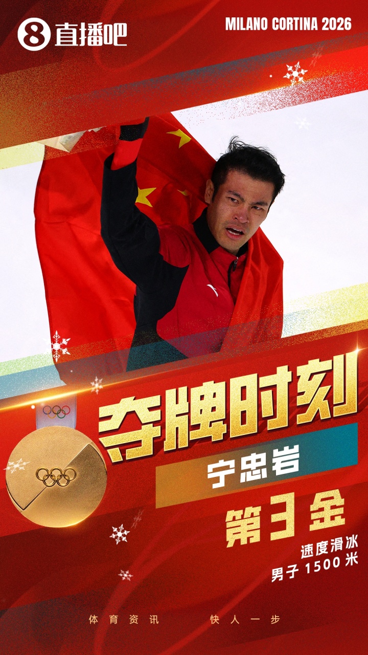 6、3枚奖牌与宁忠岩并列,成为米兰冬奥会获得奖牌最多的中国运动员