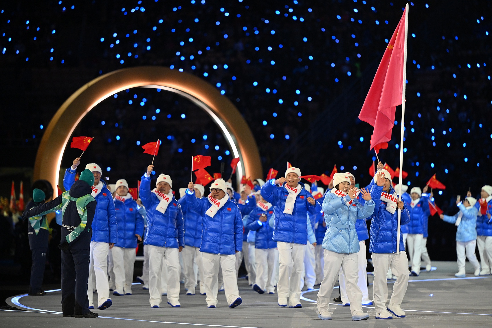冬奥会开幕式,宁忠岩、张楚桐担任中国代表团旗手