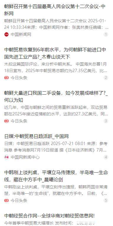 中朝贸易爆发式增长25%,月月创新高!医疗、制造大单助力朝鲜民生,中国合作新高度曝光 麻烦看官老爷们右上角点击一下“关注”,既方便您进行讨论和分享,又能给您带来不一样的参与感,感谢您的支持! 2025 年中朝双边贸易交出了亮眼成绩单,海关总署公布的权威数据显示,全年贸易总额达到 27.35 亿美元,较上一年实现 25% 的大幅增长,更实现了每月贸易额同比正增长的佳绩,这也标志着中朝两国的经济互动正式迈入稳定且持续的全新发展阶段。 中国始终是朝鲜最大的贸易伙伴,2025 年双方的贸易往来紧扣朝鲜民生改善和工业发展的核心需求。中国对朝出口品类中,医疗设备成为重要增长点,X 光机、CT 机等各类诊疗设备的出口,为朝鲜各地医院的运营提供了关键硬件支撑,制药产品也同步跟进,填补了当地医药市场的部分缺口。 除了医疗相关物资,制造类机械也持续输往朝鲜,其中既有适配轻工业生产的机床设备,也有助力农业生产的农用机械,还有不少基础建筑机械,这些设备虽有部分为中国更新换代后的二手产品,却以高性价比缓解了朝鲜工业设备老化、生产能力不足的难题,切实推动其工业化现代化进程。 从贸易结构来看,2025 年中国对朝出口并非只有医疗和制造相关物资,纺织品、建材、食品粮油等也是出口主力,塑料制品、家具等商品的出口量也随朝鲜新建房屋、工厂的需求同步攀升。而朝鲜对中国的出口则以劳动密集型加工品为主,假发、假睫毛等美容产品成为其创汇的重要品类。 2025 年中朝两国的合作早已突破单纯的贸易范畴,在双方的共同推动下,合作领域不断向教育、基础设施建设等方向拓展。教育领域的交流为朝鲜培养了一批实用型人才,基础设施方面的合作则围绕边境交通、国内基础建设展开,为朝鲜经济发展筑牢基础,相关合作也让两国的经济联结更为紧密。 值得关注的是,2025 年中朝跨境物流的恢复也为贸易增长提供了坚实保障,丹东 — 新义州的边境陆运邮路正式复通,让两国间的邮件和小件货物运输更为便捷,北京至平壤的国际旅客列车也被重新纳入时刻表,跨境交通的逐步恢复,为双方的经贸往来和人员交流扫清了不少障碍。 中朝贸易在 2025 年能实现爆发式增长,并非偶然,而是政策驱动与市场需求双向支撑的结果。两国政府层面的积极协调,让边境贸易的通关效率不断提升,贸易政策也持续优化,而朝鲜国内在民生改善、基础设施建设上的实际需求,与中国完备的制造业供给能力形成了高度互补,让双方的贸易合作有了扎实的市场基础。 这一增长态势也从侧面反映出朝鲜内部的经济活力正在逐步回升,2023 年朝鲜 GDP 实现四年来首次正增长后,其经济发展的步伐在 2025 年持续加快,国内的生产建设需求不断释放,也让中朝贸易有了更多的增长空间,各类贸易订单的落地,又进一步带动了朝鲜当地的生产和消费。 中朝贸易的稳定增长,更凸显了两国经济合作的深度融合与互利共赢的本质。中国的各类商品和设备出口,既消化了国内的部分产能,也助力了邻邦的发展,而朝鲜对中国的特色产品出口,也丰富了中国市场的品类,双方各取所需,让经贸合作成为两国关系发展的重要纽带。 作为东北亚地区的重要国家,中朝两国的经贸合作深化,也为区域经济稳定注入了新动力。2025 年 27.35 亿美元的贸易总额,虽仅恢复至 2017 年安理会相关决议前的一半水平,却已是朝鲜闭关前 2020 年的贸易规模,展现出强劲的复苏势头,也为东北亚地区的互联互通提供了鲜活的合作范本。 当前中朝的经贸合作虽成果显著,但仍面临着一些外部制约,联合国安理会的相关制裁决议,让工业和建筑领域的部分高端设备出口仍受限制,这也让两国的贸易合作暂时难以向更高端的高新技术领域全面拓展,朝鲜经济发展也仍存在结构性瓶颈,工业体系的完善仍需要长期的积累。 即便如此,2025 年中朝贸易的增长依旧意义重大,这不仅是两国战略伙伴关系持续深化的直接体现,更让双方看到了未来合作的广阔空间。随着朝鲜经济的逐步复苏,其对中国商品和设备的需求还将持续扩大,而中国也将继续依托自身优势,与朝鲜开展更多元、更深入的经济合作。 未来中朝两国的经贸往来,大概率会继续保持稳步增长的态势,双方或将在现有合作基础上,进一步优化贸易结构,挖掘新的合作增长点,让贸易合作与产业合作、基础设施合作深度结合。相信在双方的共同努力下,中朝经济合作将不断迈上新高度,也将为东北亚地区的经济发展带来更多积极影响。