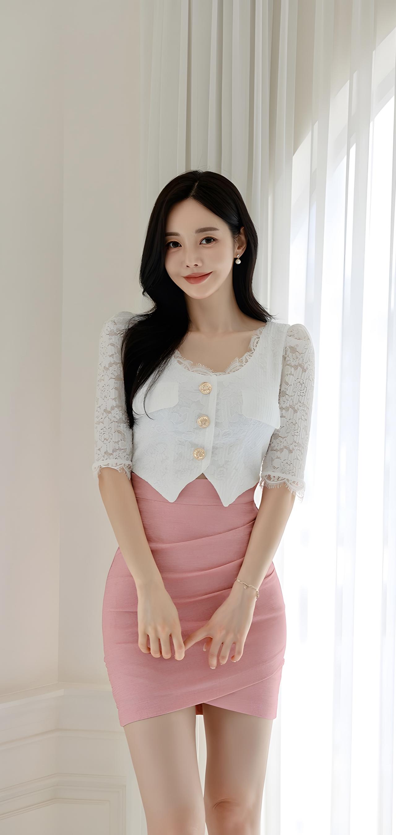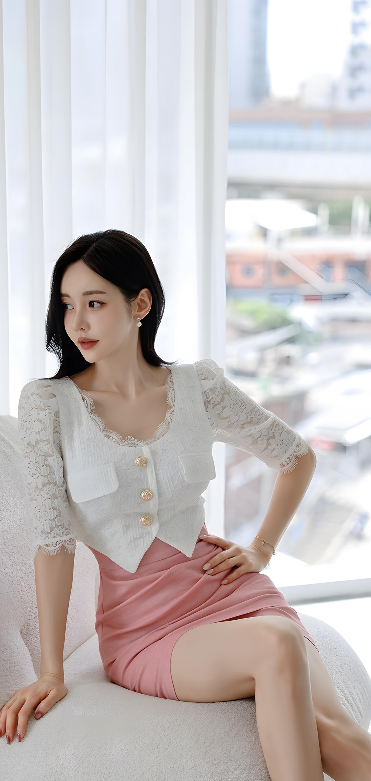 温柔甜美的粉色裙装,搭配白色蕾丝上衣,少女心满满!💖✨