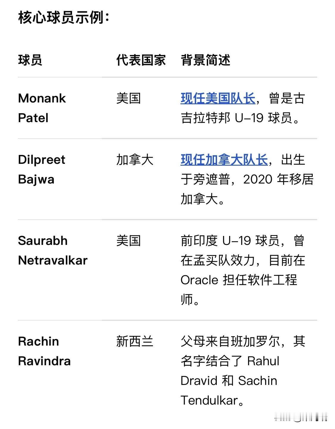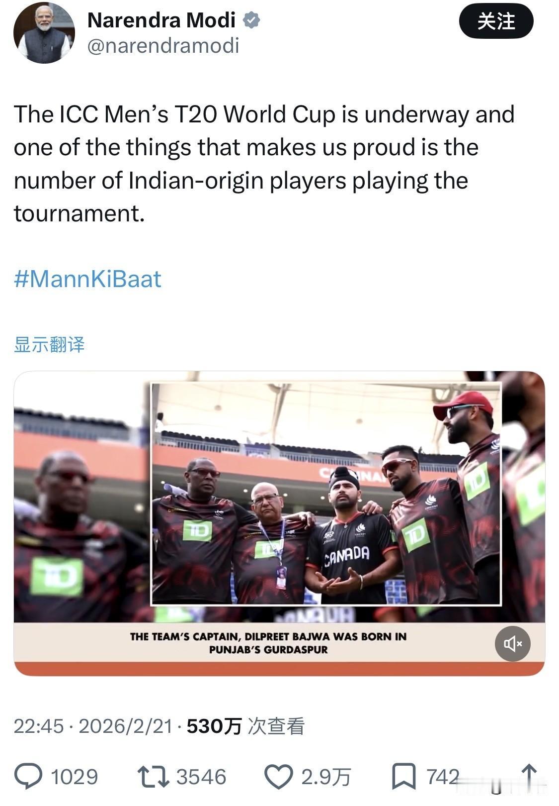 2026 年 ICC 男子 T20 世界杯(第 10 届)目前正进入关键的超级八强(Super 8)阶段。本届赛事于 2026 年 2 月 7 日开幕,由印度和斯里兰卡联合主办,决赛定于 3 月 8 日在艾哈迈达巴德的莫迪球场举行。 在当前进行的 2026 年 ICC 男子 T20 世界杯中(由印度和斯里兰卡联合主办),印度裔球员的广泛参与成为了一个引人瞩目的现象。 具体情况如下: 参赛总人数:据统计,在全部 20 支参赛球队中,约有 40 名印度裔球员代表除印度以外的国家出战。 代表球队分布: 加拿大:拥有最多的印度裔球员,共 11 名。队长 Dilpreet Bajwa 出生于旁遮普省古尔达斯普尔,队中还包括 Navneet Dhaliwal 等多位名将。 美国:共有 9 名印度裔球员。队长 Monank Patel 曾代表古吉拉特邦参加青少年组比赛。核心球员 Saurabh Netravalkar 此前曾在 2024 年世界杯中爆冷击败巴基斯坦,他在移居美国前曾代表印度参加 U-19 世界杯。 阿曼:拥有 7 名印度裔球员,包括 Jatinder Singh 和 Vinayak Shukla 等。 阿联酋:同样拥有 7 名印度裔球员。 其他球队:新西兰(如 Rachin Ravindra)、南非(如 Keshav Maharaj)以及意大利等队也都有印度裔球员的身影。 文化意义:印度总理莫迪在最近的 “Mann Ki Baat” 节目中专门提到了这一现象。他表示,尽管这些球员穿着其他国家的球衣,但他们的表现让印度感到自豪。这体现了印度人无论走到哪里都与祖国保持联系,同时也为所居住的国家做出贡献。