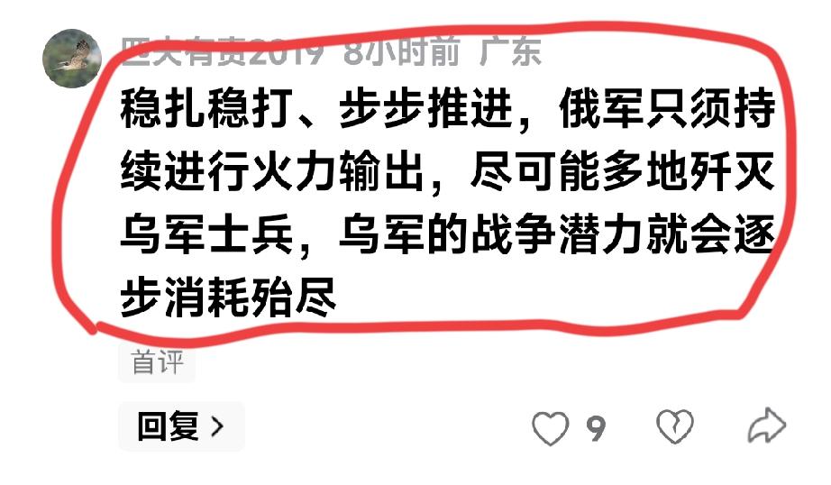 吴大辉报道:俄军克“重镇”,献礼四周年 我国著名的俄罗斯问题专家,清华大学国际关系学系教授吴大辉先生,是我经常关注的一位媒体人,因为他相对于李将军、杜专家、宋学者还算是比较客观公正的,关注俄乌战争两方面的消息都有报道,但也是有倾向性的。 比如他在沉寂了一段时间以后,就在刚刚8小时之前,报道了俄罗斯方面的一条好消息:《俄军攻克卡尔波夫卡》,估计无法在这一阶段,除了袭击乌克兰的基础设施之外,可能也是乏善可陈,在俄罗斯对乌克兰发动特别军事行动4周年前夕,这应该是算一个比较重大的战果吧。 ——俄罗斯国防部在每日战报中宣布,俄军西部集群部队在进攻行动中,攻克了顿涅茨克的卡尔波夫卡居民点。 ——卡尔波夫卡是原顿涅茨克州克拉马托尔斯克区的一处村庄,战前人口约390人。该居民点坐落于尼特里乌斯河两岸,毗邻哈尔科夫州鲍罗夫斯克区。 吴教授还为俄罗斯这一战果做了展望:“从这一桥头堡向西推进,俄军部队将直指沃尔奇亚尔、科罗维雅尔、洛佐沃耶、鲁布齐和克里姆基。若能突破这一线,西集群将打开通往奥斯科尔和伊久姆的道路。此外,控制卡尔波夫卡,可保障向红利曼方向进攻的俄军集群后方安全。” 俄乌战争从2022年2月24日开始,到今天的2026年2月23日,应该是整整四年时间了,攻克一390人的小村庄应该是让俄罗斯人欢欣鼓舞,也让咱们的吴教授欣喜若狂,反过来也能证明战场形势的焦酌,俄罗斯军队啃地皮的不易。 更加难能可贵的是还得到许多俄粉们的理解: 有人说俄罗斯军队在“积小胜为大胜”。 还有人信心坚定,认为只要俄军“稳扎稳打、步步推进,俄军只须持续进行火力输出,尽可能多地歼灭乌军士兵,乌军的战争潜力就会逐步消耗殆尽”。 可以想象我们许多人都和吴教授一样“衣带渐宽终不悔”啊,这种精神真的是相当的难能可贵。