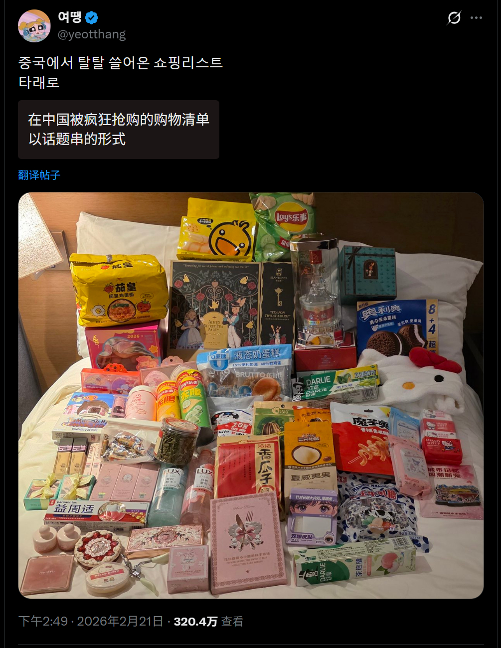 🔻韩国游客真的是照着购物清单去超市买“纪念品”的……🔻따룬파=大润发🔻肯消费,挺好。热点现场 海外新鲜事