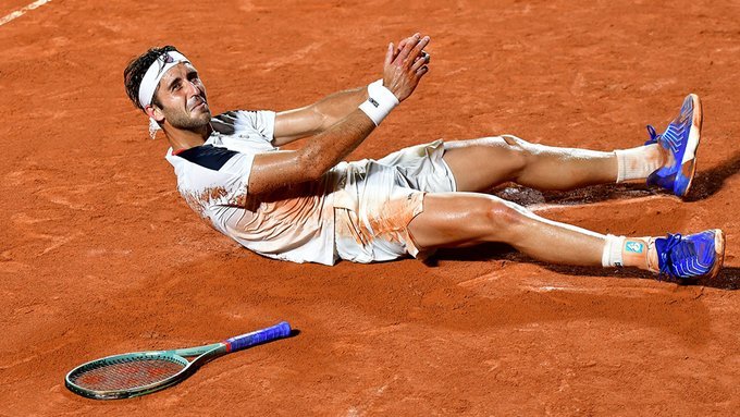 主要是他的夺冠方式实在太疯了,因雨水积压,决赛日他先把半决赛打完又接着打决赛,两场打满六盘六个多小时!半决赛先丢一盘双抢七逆转,决赛也是逆转塔比洛,身体真的太好,意志力也实在是顽强。
