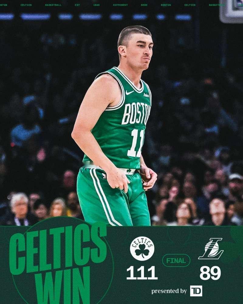 111:89客场兵不血刃战胜湖人,取得了3连胜!波士顿凯尔特人beatla