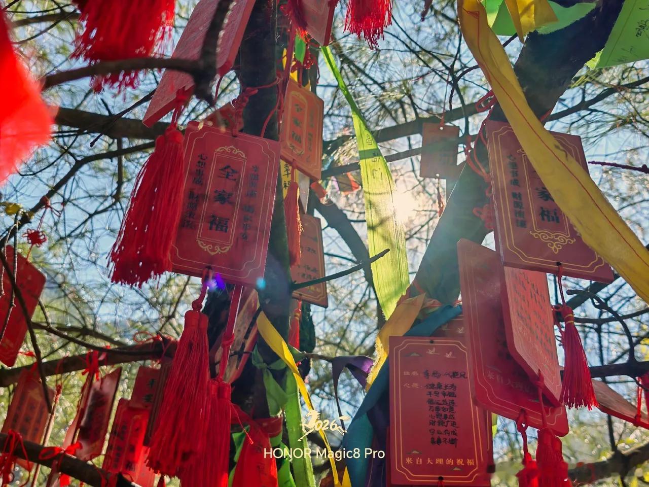 荣耀影像老大罗巍用Magic8 Pro拍的。梅花刚冒头,残雪还没化,背景是那种化开的暖光,看着看着,竟然有种想出门的冲动。