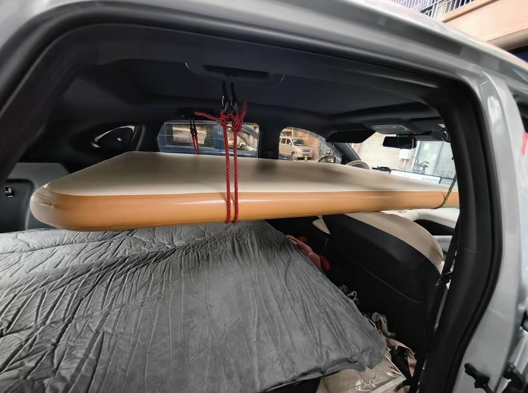 开车出行睡觉问题未被满足。不少车友买车,很多人的初心是希望自由,不用和别人挤位置,可以睡个好觉,但,车空间就那么一点大,如果人多出行,睡觉必然是不舒服。没想到聪明的车友已经想到了办法,通过挂床实现一车睡 5 人的创举。利用车本身的手拉,挂住可折叠床垫,实现上铺睡两人,下铺睡三人。一辆 SUV 实现了房车的居住空间,又没改变车的灵活性。用车知识 车知识分享计划 车里睡觉 出行安全