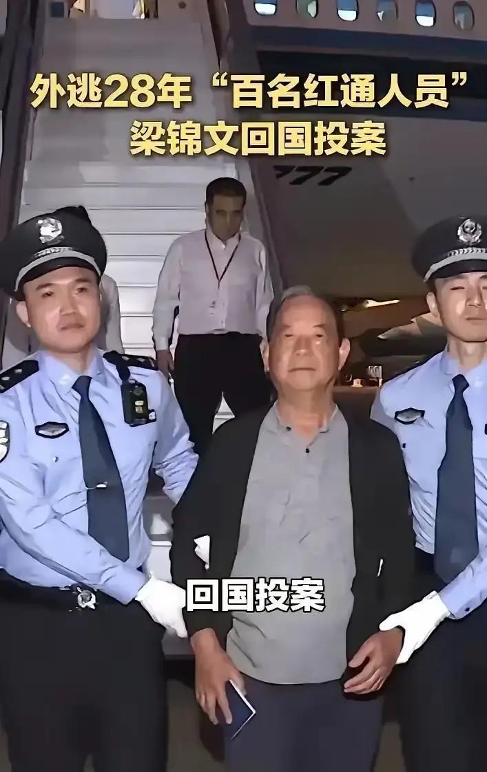 逃亡在外28年的梁锦文回来了。在经历了28年的心灵折磨之后,梁锦文回国投案自首来了。28年前,梁锦文因为涉嫌贪污逃往国外。 在许多人眼中,他是成功的企业家,前途一片光明,他最终没能守住底线,涉嫌的罪名是职务侵占,这是一种利用职务便利将单位财物非法占为己有的行为。 全球性的通缉令,是一个被国际执法机构盯上的目标,他的名字和照片,进入了全球追逃的视野。 随着中国“天网行动”的全面展开,一张针对外逃腐败分子的巨网越收越紧,梁锦文被列入了“百名红通人员”名单,位列第99号。 这个名单上的每一个人,意味着背后有一个专门的案件团队在持续跟进,无论他们逃到天涯海角。 梁锦文这二十多年的逃亡生活,更多的是隐姓埋名、担惊受怕,他不敢用真实的身份,不敢与家人轻易联系,不敢在任何地方留下可能被追踪的痕跡。 当他看到“天网行动”开展以来,一个个和他一样的“红通人员”被抓捕、被劝返,名单上的数字一个个被划掉时,那种压力是常人无法体会的。 官方通报中反复强调的一句话是“海外不是法外、外逃没有出路”,这不是一句口号,是无数个成功追逃案例印证的铁律。 负责此案的广东省、珠海市的纪检监察和公安机关,正是这种不懈努力的执行者,他们坚持不懈地推进追逃追赃工作,让这张法网的每一个环节都严丝合缝。 最终,心理防线彻底崩溃,在持续的追逃压力和政策感召下,梁锦文明白,投案自首才是唯一正确的选择。 2025年7月,在外逃整整28年后,他终于回国投案,他的归案,是“天网行动”追回的第64名“百名红通人员”。 梁锦文的回国投案,是法律程序一个新的起点,到了2026年1月,广东省人民检察院的一份报告更新了案件的最新状态,距离他1996年外逃已经过去了29年,本人也已经被正式提起公诉。 从“回国投案”到“依法提起公诉”,展示了完整的司法链条,投案自首可以作为法定从轻或减轻处罚的情节,绝不意味着可以免于法律的审判。 梁锦文的案件,在全球化和信息化的今天,所谓的“避罪天堂”早已不复存在。 中央反腐败协调小组国际追逃追赃工作办公室的统筹协调,加上地方各级办案机关的通力合作,已经构建起一个高效、联动的跨境腐败治理体系。 是为了维护法律的尊严,捍卫社会的公平正义,也是对那些仍然抱有幻想的在逃人员最严厉的警告。 梁锦文二十九年的经历是一个惨痛的教训,他用半生的“不自由”换来了最终必须面对的审判。 你们觉得梁锦文这近三十年的逃亡,对他个人和家庭来说,是逃避了惩罚,还是承受了更漫长、更煎熬的折磨? 个人观点,仅供参考!