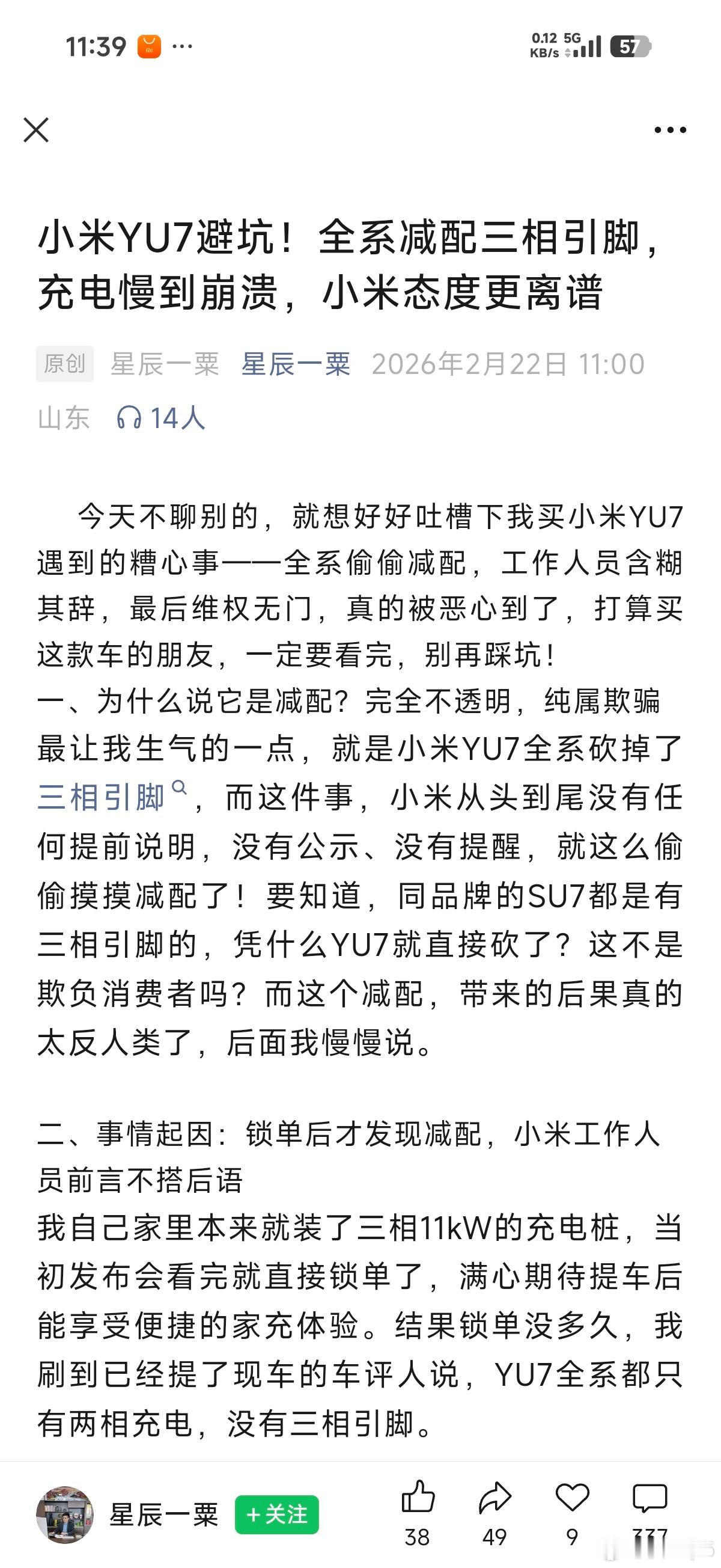 希望大家注意一下,YU7从发布到现在一直都是公开信息的,它并不支持11kW交流充电,也就是不支持三相交流输入。这一点去年6月我们就说过,而且配套YU7的交流充电桩本身就没有三相输入功能。
