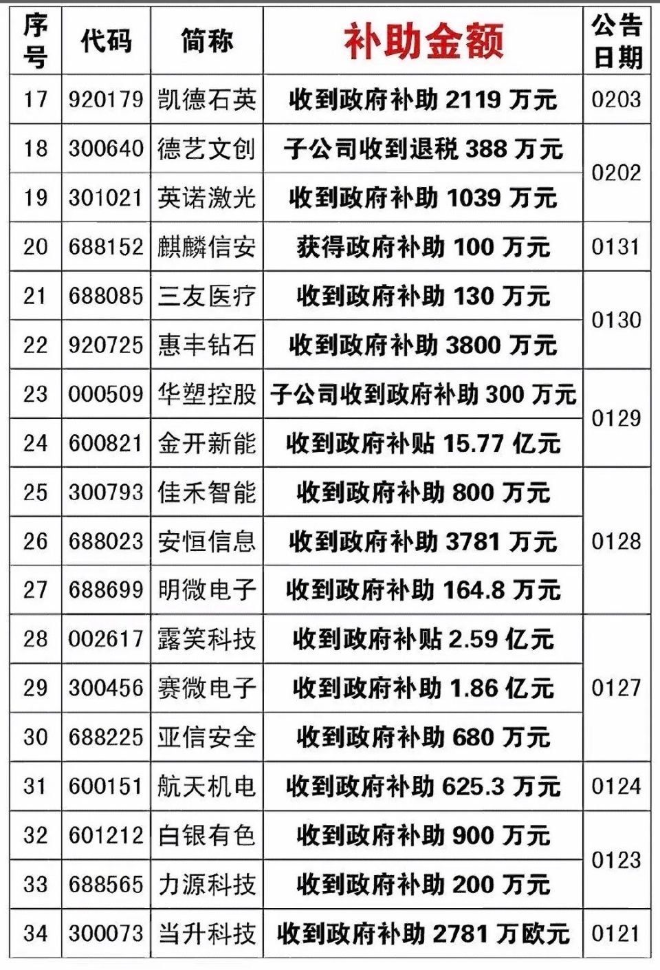 近期多家公司获得政府补助,数额相当可观。6月29日,三安光电发布公告,其全资子公司湖南三安收到2024年度科技研发专项扶持资金2亿,4月1日至6月28日,公司及子公司还收到未达披露标准的补助约1438.62万元,2024年第二季度递延收益分期摊销转入其他收益预计1.5亿,三项合计约3.64亿,占最近一期净利润的99.41%。6月28日晚,深天马A公告收到研发经费补助资金2.08亿。另外,3月31日晚,三棵树收到7291.82万补助,占最近一期净利润的42.02%;海螺新材子公司收到211.12万补助。政府补助能助力企业发展,这些公司有望借此更上一层楼。