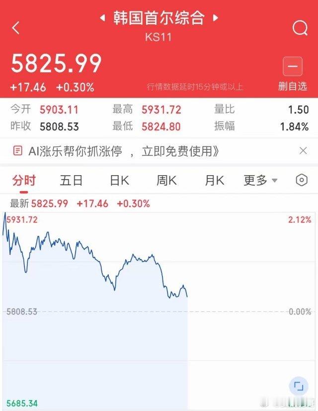 韩国股市今天冲高回落较高点跌超百点,因为明天有重大利空要来了:大年初七,韩国股市今天不听劝,大涨两天后依然高开,开盘就突破了5900点,随后冲高,但是随后快速回落,截至目前较最高点5931点大跌百点,险守5800点。这就是不听劝的后果,单边暴涨行情后必然大跌,还是A股慢牛稳。而且明天A股就要开门了,这对韩国股市是利空消息,资金会跑来抄底低位的A股,韩国股市获利盘太大了,散户都赚钱了肯定高位跑掉来抄底A股和港股,所以今天港股和A股期指大涨!