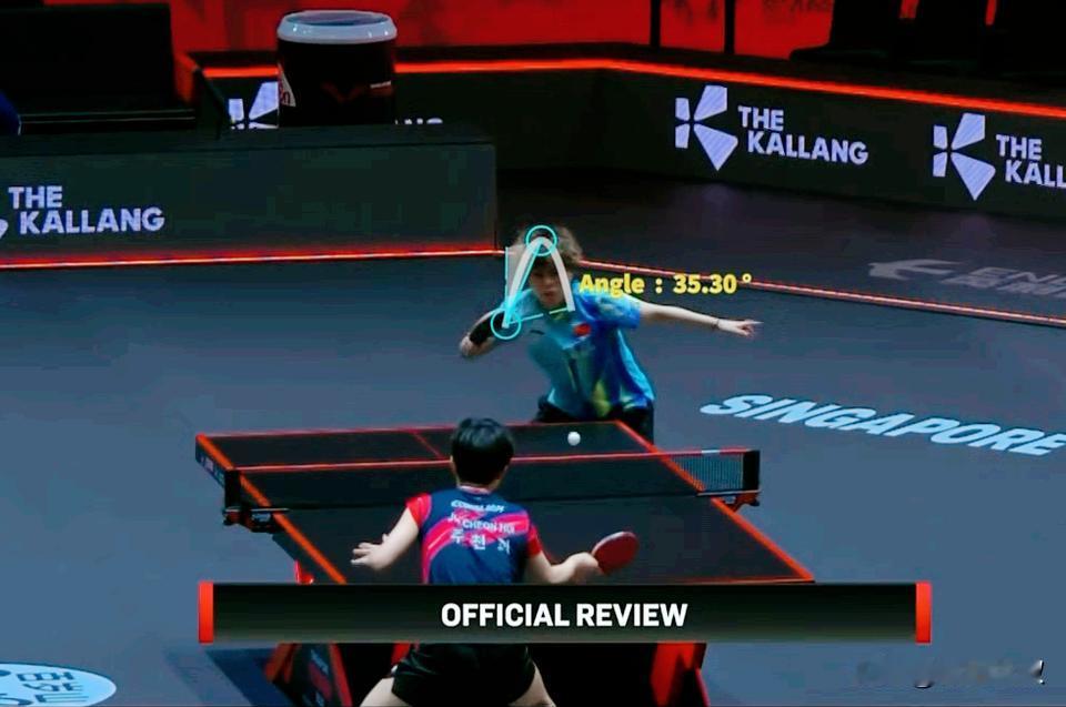 注意!这次新加坡大满贯,裁判对国乒发球要求很严格! 昨天王楚钦因为发球时手在球桌内, 被直接扣分, 但是大头申请了鹰眼, 大头发球完全没问题。 今天大迪和朱芊曦第一局, 也被裁判扣分, 不过大迪回抛35度, 确实超30度了。 大迪受到了影响, 朱芊曦连得6分, 10:9拿到局点, 多亏大迪关键球稳定, 最终13:11拿下。 国乒其他队员也应该注意, 被裁判扣分, 太影响进攻节奏和情绪了。