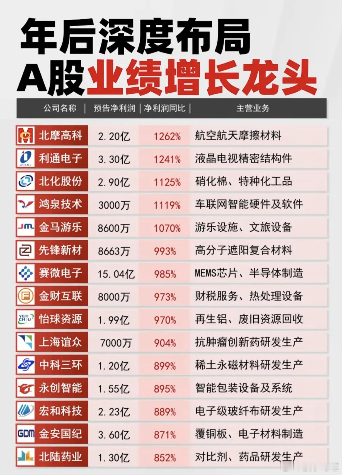 50家公司业绩高增长,最高增长4379%,最低增长615%。业绩+题材,才是王道!相关核心龙头股名单:今日看盘股票
