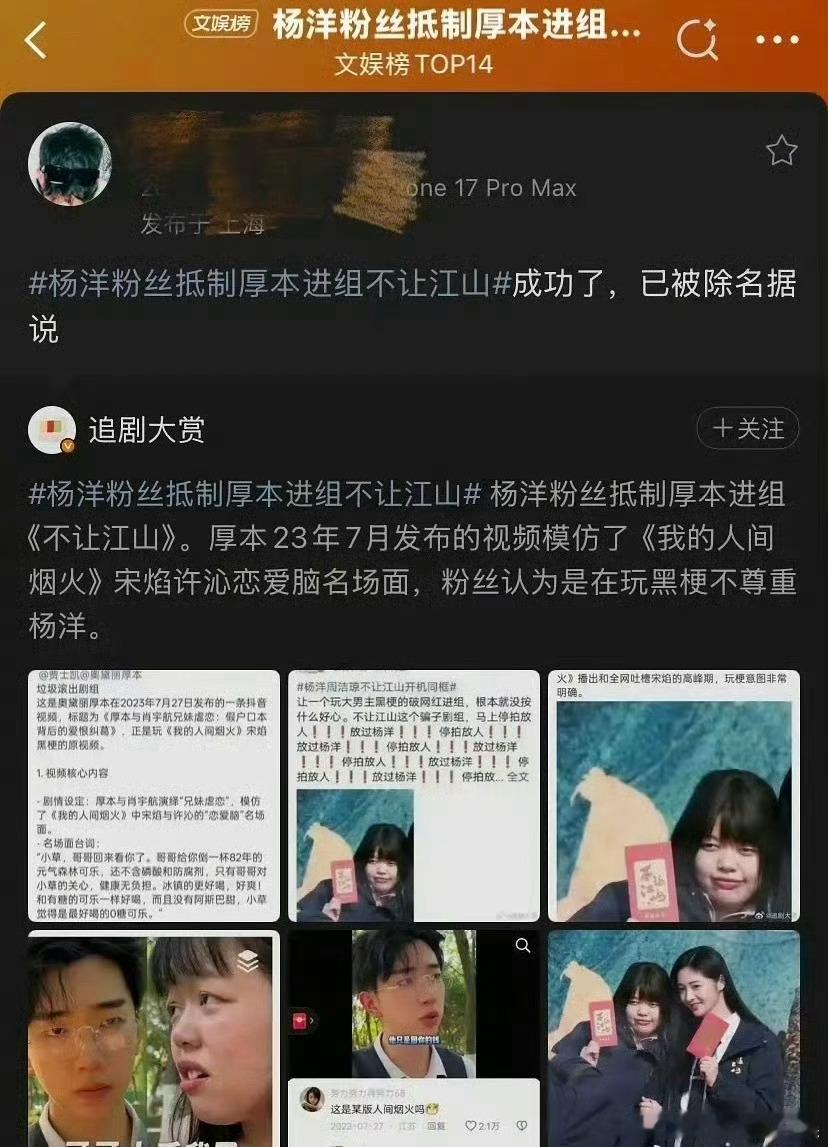 粉丝这是维权成功了吗?曝厚本被不让江山除名