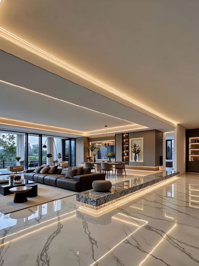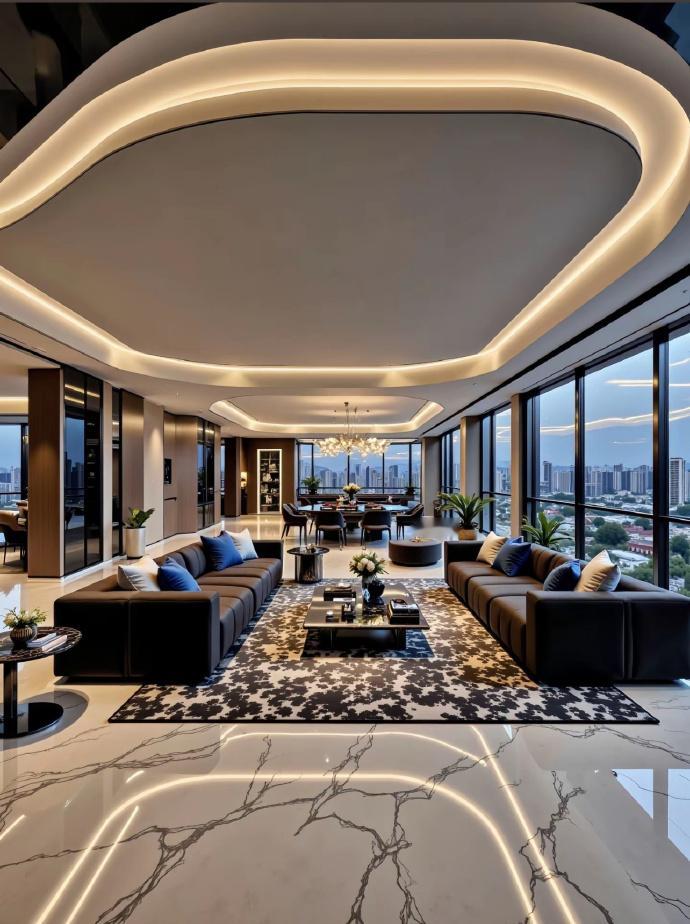 舍弃传统客厅布局,沙发换个朝向也很出彩,室内76平给大家参考..
