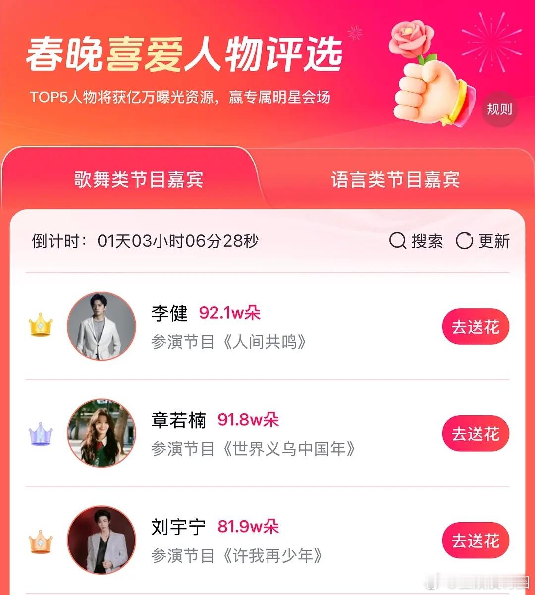 章若楠国民度这一块百度搞的春晚喜爱人物评选男粉也是发力了啊