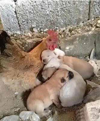 家里的狗妈妈意外去世了,留下了好几只小奶狗,主人一时不知道怎么办才好[流泪]。没想到家里的大公鸡竟然当起了临时妈妈,让小奶狗们都靠在它的身上睡觉。母爱也是能跨界的,一只公鸡当起了狗狗的妈妈,温暖人心
