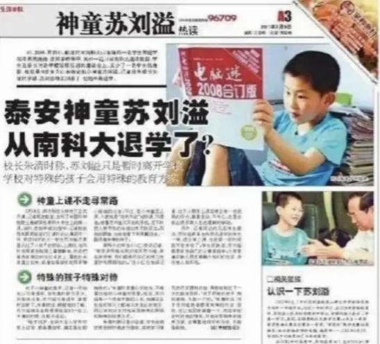 2000年,山东有一神童,短短的2天便念完小学,10岁那年参加高考,考出了566的高分,但他却只读了1年大学,就嫌弃太简单回家了,如此的奇人令人好奇之余,又感到十分质疑,究竟是觉得大学太简单,还是被打回原形了! 这个孩子叫苏刘溢,2000年出生在山东泰安,7岁那年,他去泰安三里小学试读五年级,只用了两天半,就掌握了全部小学内容,之后直接进入初中阶段。 2007年9月,7岁的苏刘溢被泰山博文中学破格录取,他用一年时间学完初中所有课程,2008年9月,8岁的他进入泰安二中试读高一,在高中只待了不到一个月,就退学回家自学。 自学期间,他靠Windows帮助文件学会编程,一年多时间,他掌握了C语言、VB等十多种编程语言,甚至他还基于Linux内核,定制了一套自己的可视化操作界面,里面能运行编程软件、QQ和Office。 2010年6月7日,10岁的苏刘溢走进高考考场,他五门科目全部提前交卷,高考成绩公布,总分566分,这个分数超过当年山东理科军检线20分,在35.6万理科考生中排7万名左右。 这个分数没达到一本线,他和家人没选择普通二本,他们去深圳参加了南方科技大学的单独面试,后来被南科大录取,成为学校首批46名学生中年龄最小的一个。 2011年,苏刘溢在南科大读了不到一年,就离开学校回了泰安,网上传出他“嫌课程简单”的说法,但官方和校方的说法不是这样。 南科大校长朱清时明确表示,苏刘溢是“回家”,不是退学,同学的反馈显示,苏刘溢在学校有不适应,他上课爱走动,难以专注,和同学年龄差距大,共同语言少,很难融入集体生活。 2011年8月,南科大开学,苏刘溢没有返校,他的小姨向媒体证实,他在家状态很好,大部分时间自学,偶尔出门玩耍,此后,他便逐渐淡出公众视野。 苏刘溢的经历,没有“嫌简单”的官方说法,他离开大学,核心原因是年龄太小,无法适应集体生活和校园节奏,这不是天赋消失,是成长节奏和环境不匹配。 以上部分内容是小编个人看法,如果您也认同,麻烦点赞支持!有更好的见解也欢迎在评论区留言,方便大家一同探讨。
