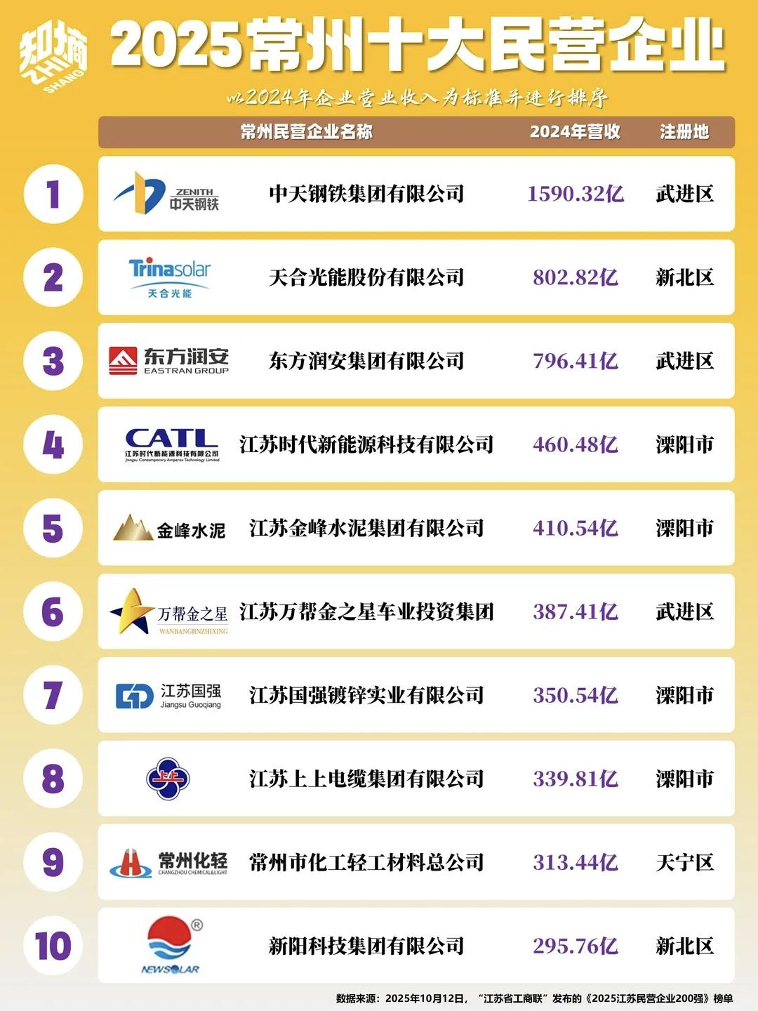 2025年江苏常州十大民营企业名单如下图,可以看出营收过千亿的公司有1家,营收过500亿的有3家,其他的公司营业收入在290亿~500亿之间。 1.常州被工信部授予中国新能源之都,新能源相关企业近4000家,上午缺配件、下午就能找到供应商解决 。 2. 2017年常州抄底中航锂电(中创新航),一举奠定动力电池龙头地位; 2019年常州实现新能源整车量产(理想、比亚迪等)。