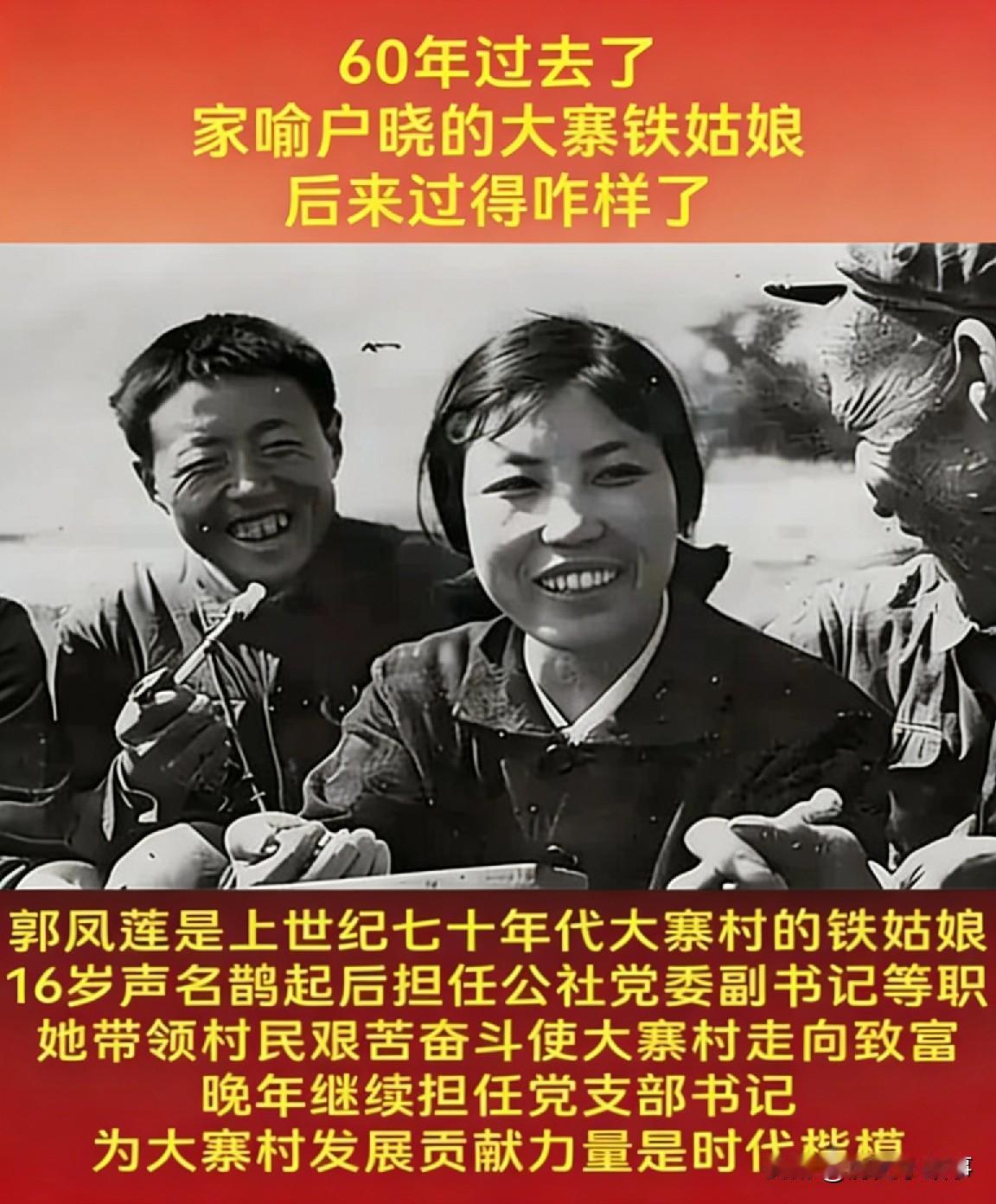 1980年,33岁的郭凤莲被叫进大寨党支部办公室。上级来人念了一份调令:免去大寨大队党支部书记职务,调晋中果树研究所任副所长。屋里静得能听见自己的心跳,她没说话,只是攥紧了手里那本磨破边的党章。 那时候的郭凤莲,早就是全国皆知的“大寨铁姑娘”,16岁就扛起锄头加入铁姑娘队,跟着陈永贵跟穷山恶水死磕。大寨全是乱石坡,种不出庄稼,她带着姑娘们光着脚搬石头、修梯田,冬天寒风刮在脸上像刀割,手上的裂口渗着血,裹上布条接着干;夏天顶着烈日挑土肥,肩膀磨出血泡,破了又结痂,愣是把荒山秃岭改成了万亩良田。 从普通社员到大队党支部书记,17年里她把命都扎在了大寨,村里的水渠、梯田、粮仓,每一处都浸着她的汗水。可1980年正是农村改革的关键节点,大寨旧有的生产模式跟不上时代发展,调整人事、转变思路是大势所趋,这份调令,就是时代浪潮拍过来的现实。 换做旁人,或许会委屈、会争辩,可郭凤莲只是攥着那本党章沉默着。那本党章是她入党时的宝贝,跟着她在田埂上、工地上翻了无数次,边角磨得稀烂,里面还记着她给社员们定的生产计划、帮扶清单,那是她扎根大寨的全部初心。 她没提任何要求,收拾了简单的行李就奔赴新岗位。到了晋中果树研究所,她彻底放下所有光环,从头学起。以前管的是千人大队,现在蹲在果园里学嫁接、记栽培数据,跟着技术员跑遍周边村落,把铁姑娘的拼劲全用在了果树种植上。身边人都替她惋惜,说她拼了半辈子落得这般境地,她却只说:“干啥都是为国家,没啥亏不亏的。” 这一沉寂,就是11年。11年里,她没抱怨过一句,没借过大寨的名气谋半点便利,踏踏实实做着基层工作,也在这段日子里看清了大寨未来的发展方向。 1991年,郭凤莲临危受命重回大寨。此时的大寨没了往日的光环,产业单一、发展滞后,乡亲们的日子也陷入了困境。她回来后没走老路子,而是带着大家搞转型:办水泥厂、建羊毛衫厂、开发红色旅游,把大寨的历史底蕴和市场经济结合起来。 她还是当年那个敢拼敢闯的铁姑娘,跑项目、拉资金、盯生产,每天天不亮就出门,深夜才回家,饿了啃口干馍,累了靠在桌边歇会儿。有人劝她歇一歇,她却说:“乡亲们信我,我就得把大寨的日子过红火。” 靠着这股不服输的劲,大寨彻底改头换面,从单一的农业村变成了农工商旅全面发展的新农村,“大寨”这块金字招牌,再次被她擦得锃亮。 回望郭凤莲的人生,从巅峰被免职的隐忍,到沉寂沉淀的坚守,再到重回故土的再创辉煌,她从来没丢过基层实干者的初心。那本磨破边的党章,攥住的不仅是一份信仰,更是她对这片土地、对乡亲们的深情。 各位读者你们怎么看?欢迎在评论区讨论。