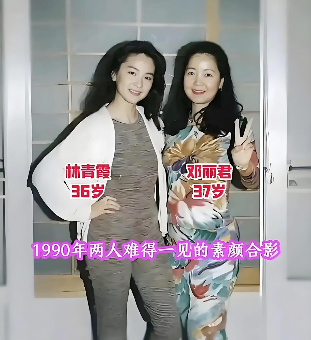 这是90年代邓丽君与林青霞的合影,当时两人都是30多岁,一个甜美大方,一个风华绝代。邓丽君与林青霞大一岁,但因为身体原因未老先衰,容貌明显像是中年妇女,而林青霞还如少女一般清丽可人。 邓丽君出生于1953年1月,祖籍河北省大名县,60年代开始出道,70年代大红大紫,80年代开始全球巡回演唱,是首位征服亚洲市场的华人国际巨星。邓丽君在华语歌坛的地位就像金字塔的塔尖,至今无人能够替代。哪怕是大家公认的天后王菲,也要谦卑地叫邓丽君一声阿姨。 邓丽君是华语歌坛百年一遇的奇才,是一位划时代的文化偶像。她的音乐影响力穿透了时代,滋养了无数后辈音乐人,也慰藉了几代人的心灵。可惜这么受欢迎的人从未登台央视春晚,向大家问好,成为广大歌迷的遗憾。 邓丽君是歌坛的天花板,林青霞则是影坛的大姐大。她出生于1954年11月,祖籍山东省莱阳市,从影20多年,出演了上百部电影,艺术成就获得了国际认可。林青霞的美貌和气质深入人心,被公认为华语影坛的第一美女。她的文采也很好,还出版过散文集,比这些女演员更有内涵。 邓丽君和林青霞在各自的领域取得了突出成就,两人惺惺相惜,私交很好。两人还是校友,都毕业于金陵女子中学。可惜一位过早香消玉殒,另一位在岁月的历练中沉淀出更醇厚的韵味,越活越滋润。