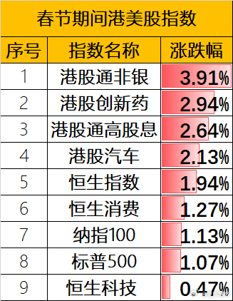 恒科大涨3.34%,假期港美股黄金白银涨幅统计~