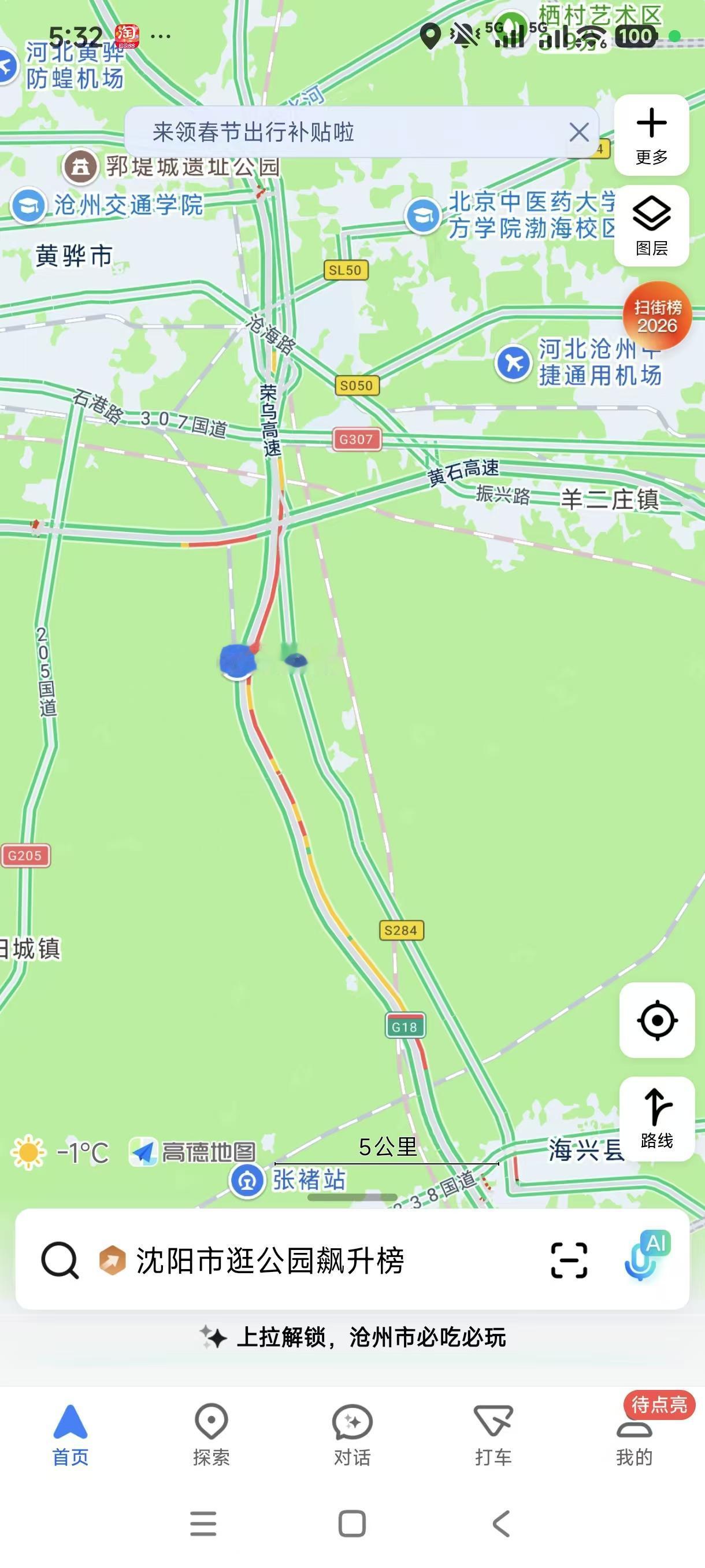 争分夺秒,距离高速免费24点截止不到5个小时!市区不堵,车辆都堵在高速了!根据目前的高德地图了解到,京哈葫芦岛段,山海关段比较拥挤!在天津附近也拥挤,因为很多车辆都想在今天晚上出高速,而市区目前已经属于晚高峰并不拥挤,看出了很多人都卡点出高速,现在很多车主都希望尽快的出高速,距离24点不到5个小时,所以大家都在拼命的开车! 温馨提醒驾车注意安全不要疲劳驾驶,毕竟欲速则不达,和平安相比高速费都是廉价的,可以在就近的高速口出来在进去,这样尽可能的安全行使,让平安与您相伴!另外司机朋友不要加塞,任意变道,会延缓车辆的速度,稳步的速度前进是最快到达的方式,希望大家都可以平安抵达沈阳城市,26年沈阳欢迎您的到来!