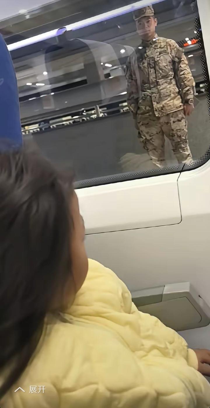 小女孩的妈妈正在车厢里放行李时,抬头看见车窗前,一名军人和小女孩隔窗对望着,瞬间就绷不住破防了。 车站的站台上,一位军人一手提着行李,一手拉着自己的女儿,不时转头跟身边的媳妇叮嘱着什么。 孩子妈妈带着女儿走进了车厢里,军人爸爸站在站台上目送着母女俩。 根据退役军人事务部统计,全国累计发放优待证400多万张,许多高铁站开设了军人优先通道。这位爸爸可能马上要坐十几个小时的火车回部队,家人专程来送他。春节前后铁路发送旅客超2亿人次,团聚和离别每天都在站台上演。 军人的假期通常只有15到20天。国防部数据显示,80%以上的军人每年与家人团聚时间不足30天。孩子刚熟悉爸爸的味道,就要隔着车窗看他站成一道风景。妈妈包里那张没有爸爸的全家福,能让孩子看一整个冬天。 女孩在车窗上画了个小爱心,爸爸立正回了个军礼。这一幕被车站监控拍下后,这段视频播放量过千万。评论区里2万多条留言,很多军嫂说“看一遍哭一遍”,还有退伍老兵晒出当年的站台票根。 这种离别在全国408个客运车站每天都在发生。妈妈们练就了笑着挥手的能力,等车开动才让眼泪掉下来。孩子画的爱心里藏着3到6岁儿童特有的表达方式,心理学家说这叫“客体永存”概念建立的关键期。 铁路部门2024年春运报告显示,带儿童出行的旅客比平时多三成,很多是军嫂带着孩子去探亲。临别时孩子把糖果塞进爸爸口袋,这个动作被高铁摄像头记录下来。爸爸后来发朋友圈说:“糖在口袋里化了,甜了一路。” 军人守国家,军嫂守小家。离别是生活的一部分,车窗隔开的是距离,隔不开牵挂。国家给军人优先的通道,军嫂给家庭稳固的后方,孩子给父亲崇拜的眼神,这大概就是普通人过日子的样子。