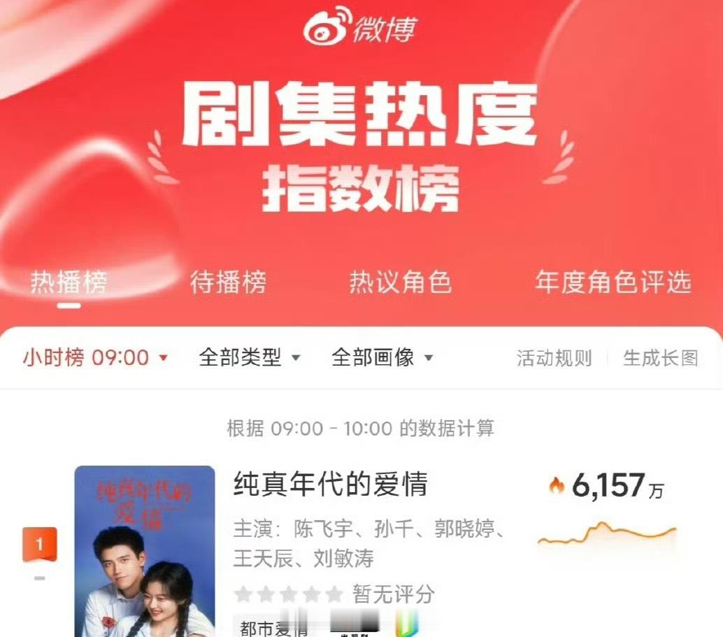 陈飞宇、孙千《纯真年代的爱情》开播第二天全平台热度断层登顶了,猫眼灯塔酷云多榜单TOP1,这个数据怎么样