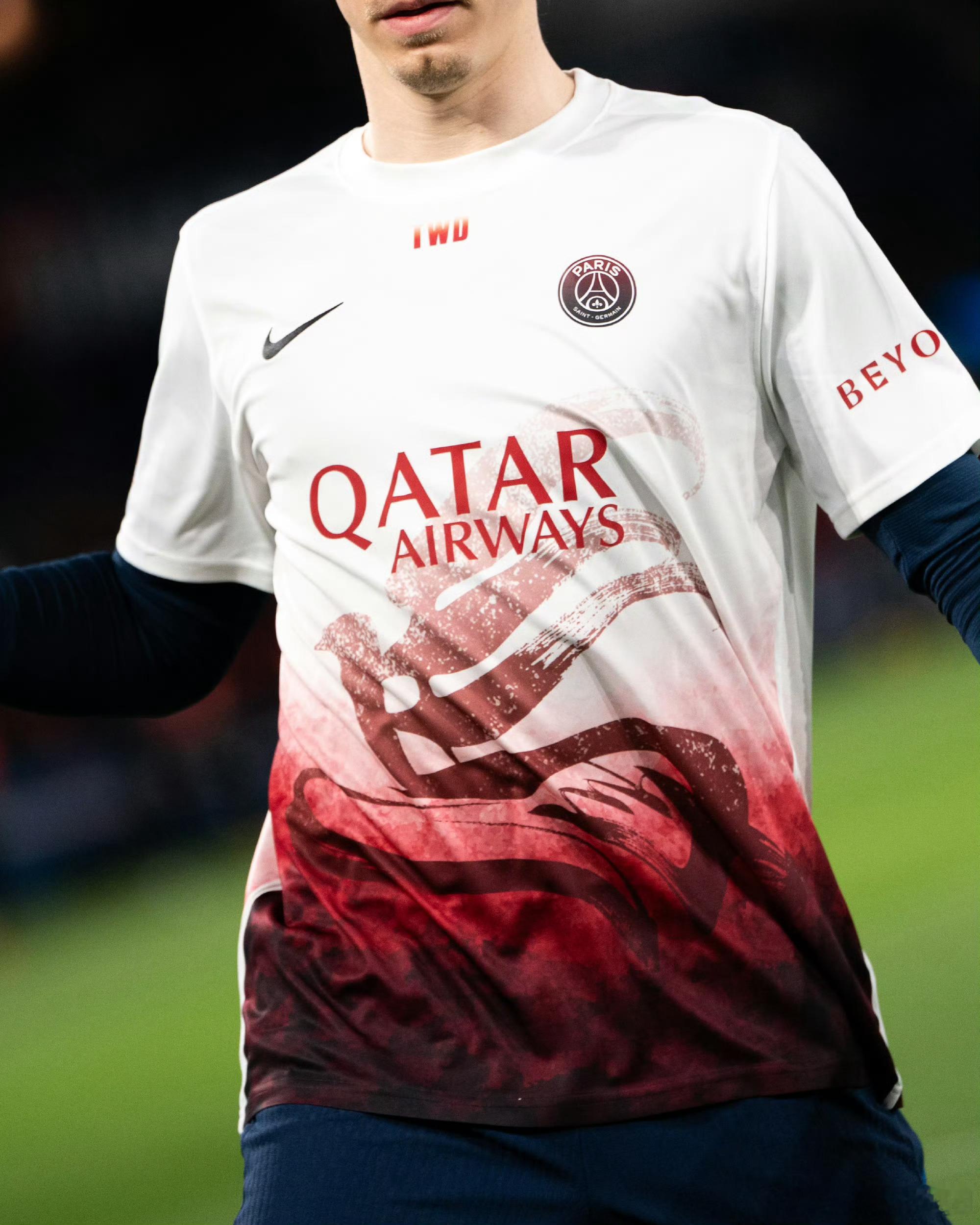 王嘉尔巴黎圣日尔曼联名球衣 就这样在意想不到的领域打破大家的想象!他的个人品牌与顶级足球俱乐部达成联名合作,PSG球员全员上身征战赛场!