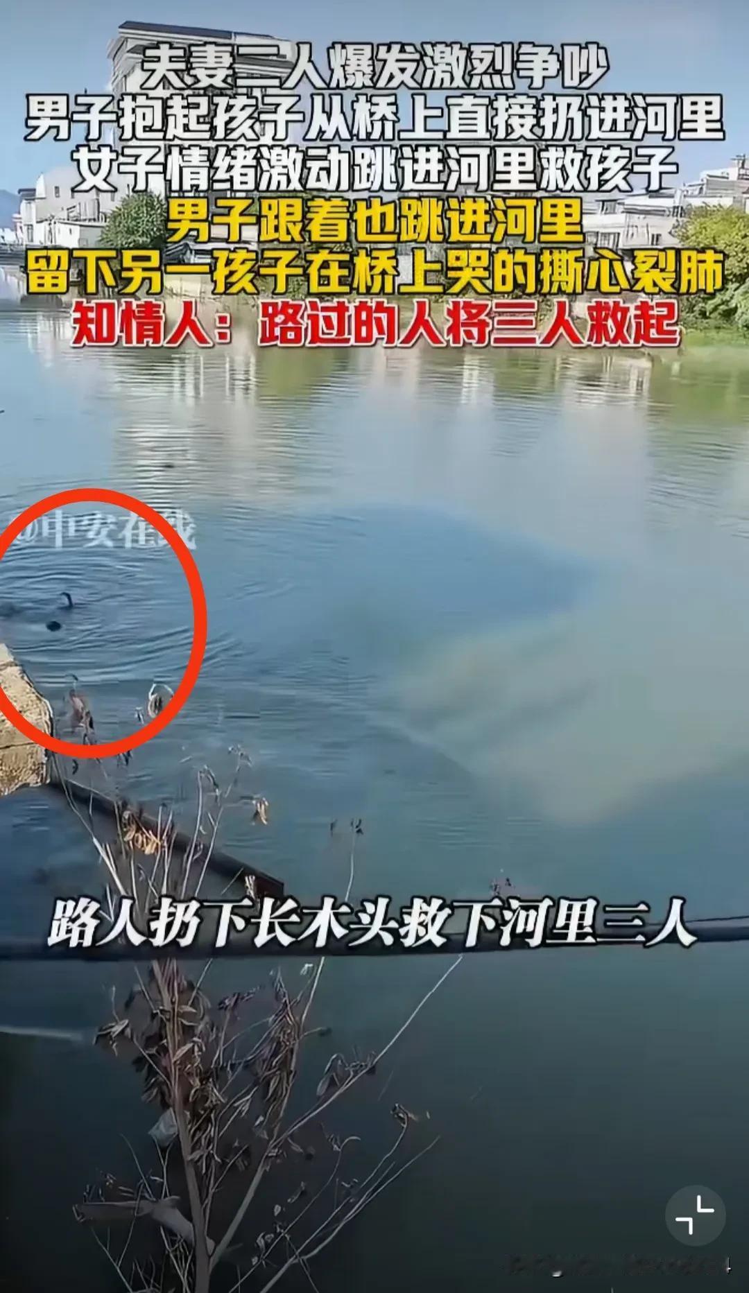 广东潮州,一对外地务工的夫妻俩,为了省钱,带着两个孩子在桥边居住。 这日,丈夫又喝醉酒,与妻子越吵越激烈,竟一把抱起年幼的孩子抛到河中。妻子见状,脸吓得煞白,嘶吼着“为什么要这样”,随即立刻翻越栏杆跳入水中施救, 丈夫看妻子跳入水中,似乎清醒了些,也跟着跳水。夫妻俩的另一个孩子全程目睹,看着水中的家人哭得撕心裂肺! 最终众多路人合力将三人救起,此事引发了众多网友热议: “这男的还配当爸爸嘛!咋不自己跳扔孩子干嘛?” “男的犯罪了吧?女的赶紧离婚,太可怕了,连自己的骨肉都能投入河中!” “想象下这两个孩子心里遭受多大的冲击,可能要用一辈子去治愈自己的童年[流泪][流泪]” 小编认为,这种情绪不稳定,且随意欺辱弱小的,实在不适合当家长。离婚给孩子一个安稳的环境,才是对孩子最好的爱护。 对此,您怎么看?