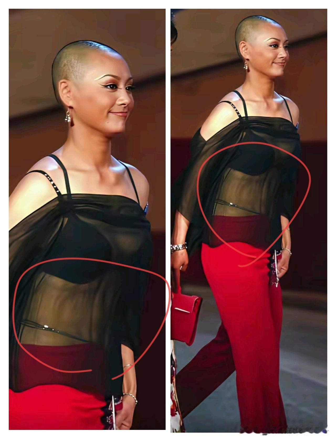 宁静早期走红毯,腹肌比光头还抢镜。 宁静的造型都是标新立异,人也傲娇自大。 一个女人这样的造型走红毯,聚光灯一定在光头上面,但我并没感觉到美。 说实话衣服搭配也不伦不类,黑纱吊带配红裤子,看不到时尚最多是混搭。 透过黑纱看到了宁静完美的身材,该平的平,该凸的凸,玲珑有致,这才是一个女人傲娇的资本。 不得不说宁静身材管理到位,她参加综艺总是自带优越感,很多人都说她另类,嫁老外会外语,还有一个混血的大儿子,宁静才自我感觉良好。 图片来自网络侵权可删。
