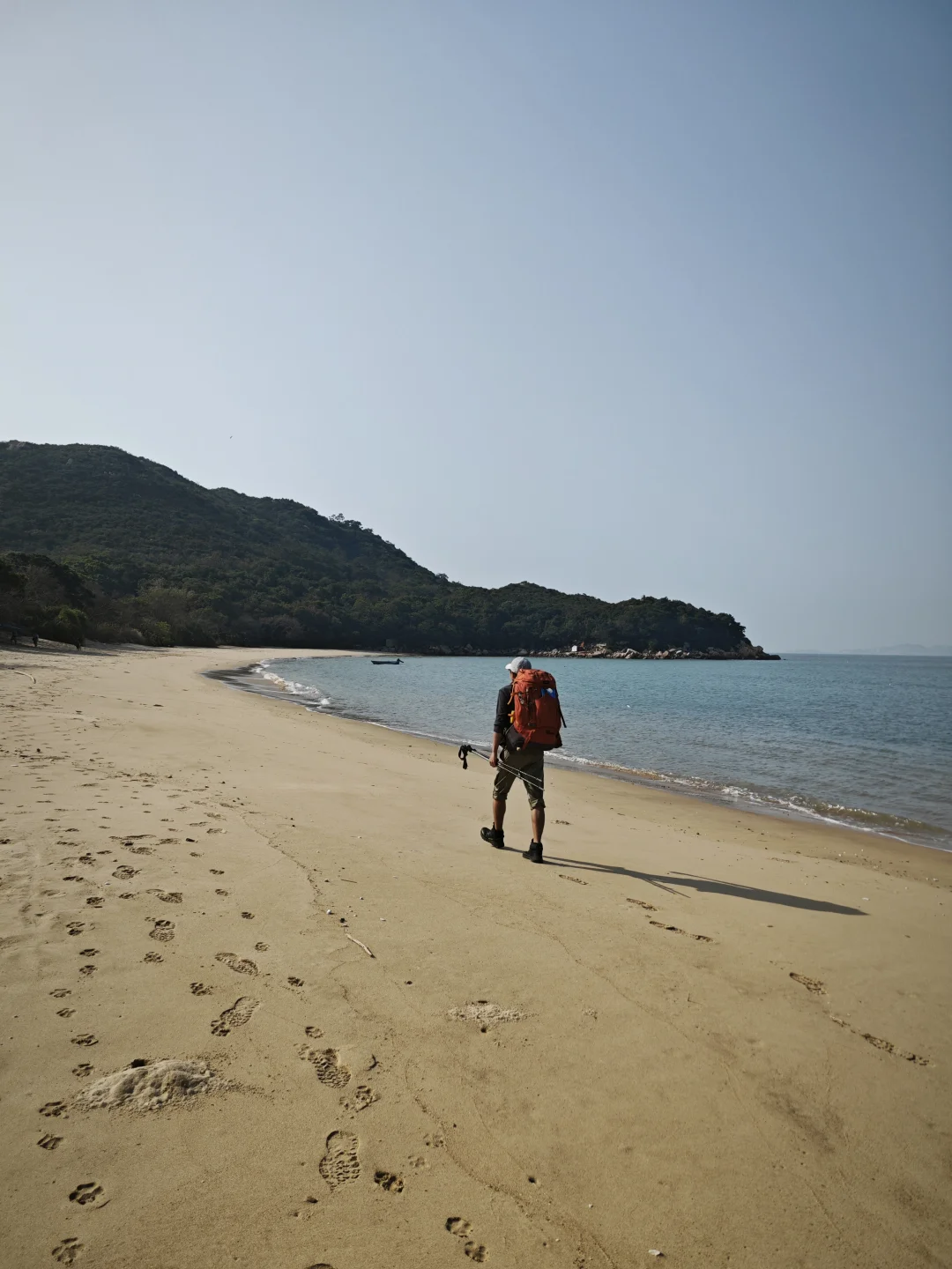 今天是重装凤凰径的最后一天,也是最轻松的一天,路程短,爬升少,只需要爬升一座275米高的大牛湖顶,可以晚点出发,在贝澳营地沙滩玩一会再走。