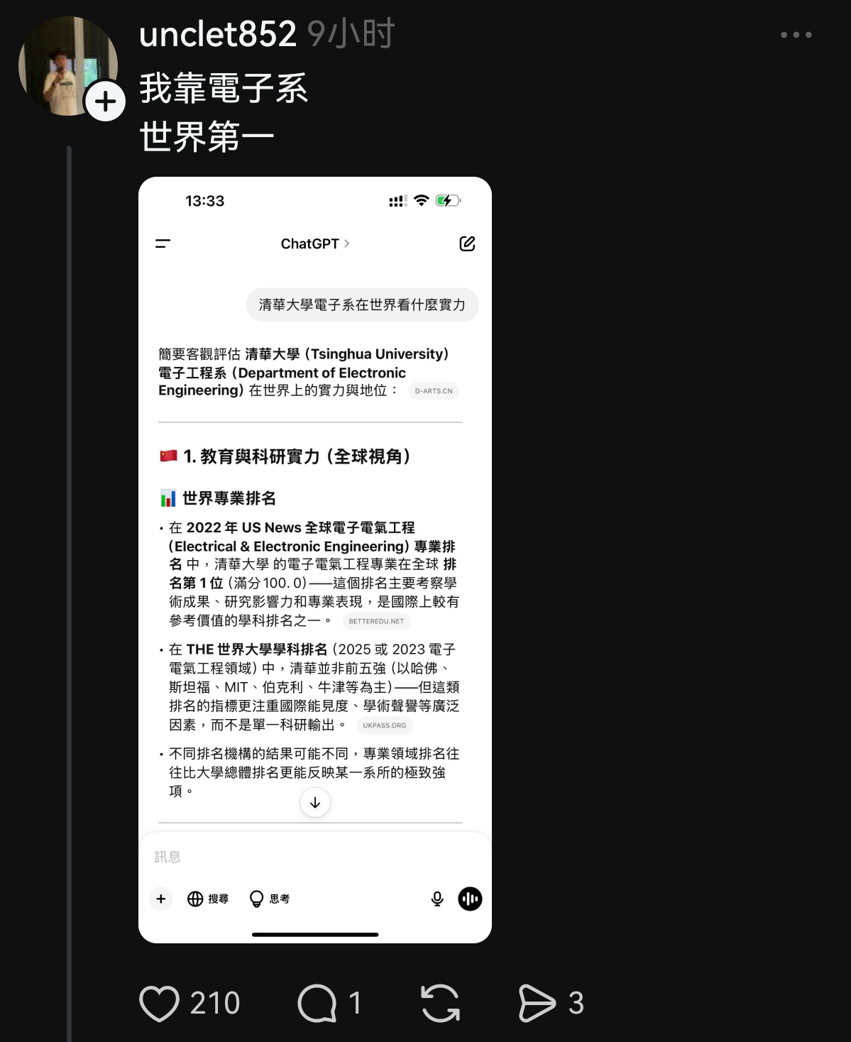 哪怕是青鸟遍地的脆,当有台湾人晒出自己的清华大学学生证时,依然会得到一群繁中人的膜拜