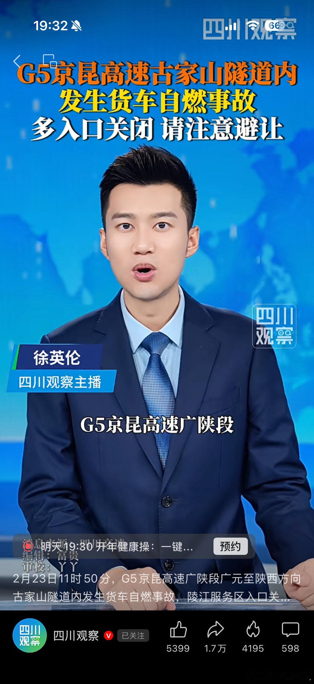 位置处于G5京昆高速广陕段(广元至陕西方向)古家山隧道内(G5京昆高速1510公里处),涉事车辆为一辆拉苹果的大货车,发生自燃,火已扑灭,目前正在拖车、清理现场。据官方明确:无人员伤亡。建议返程的车辆分流至广元绕城高速。