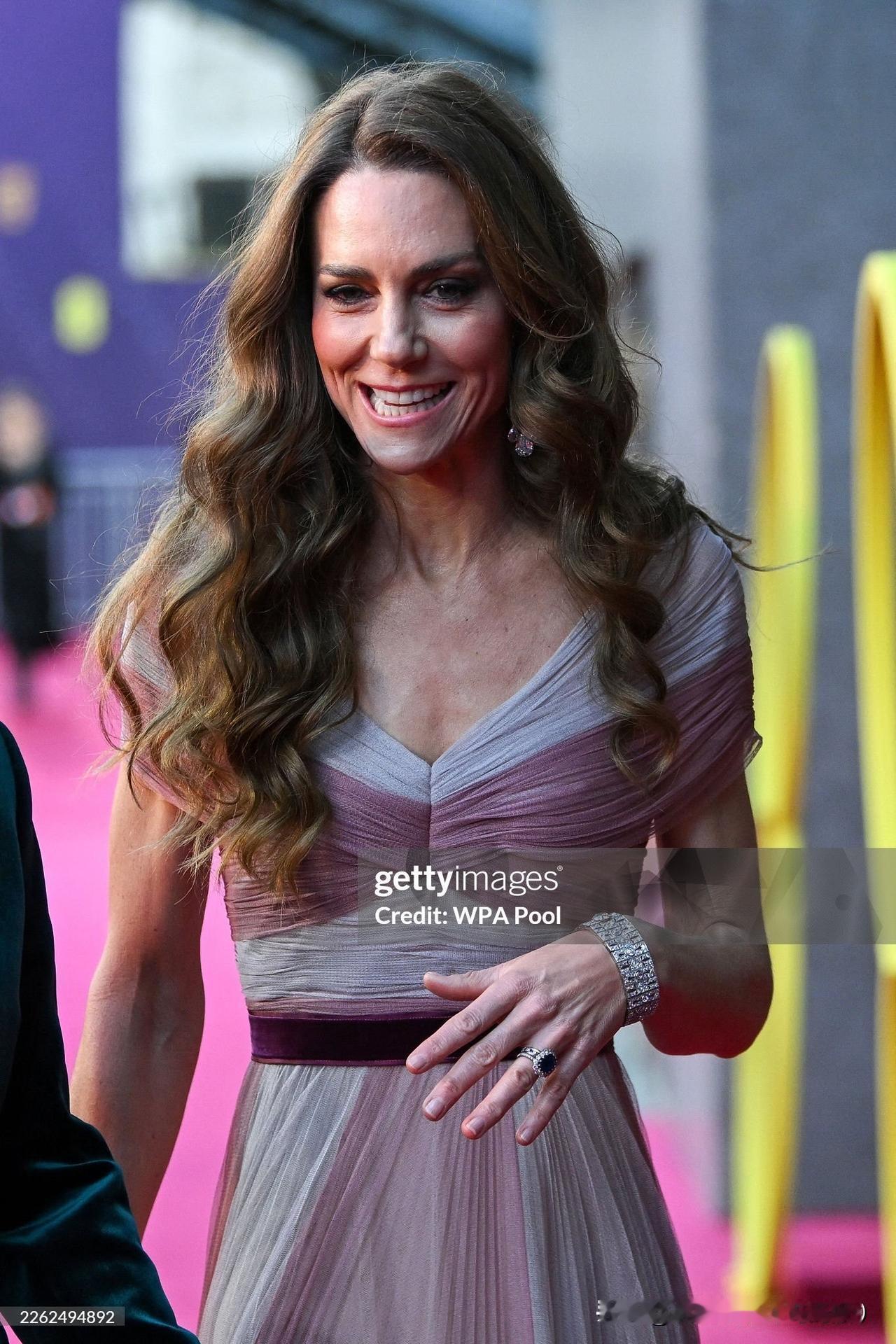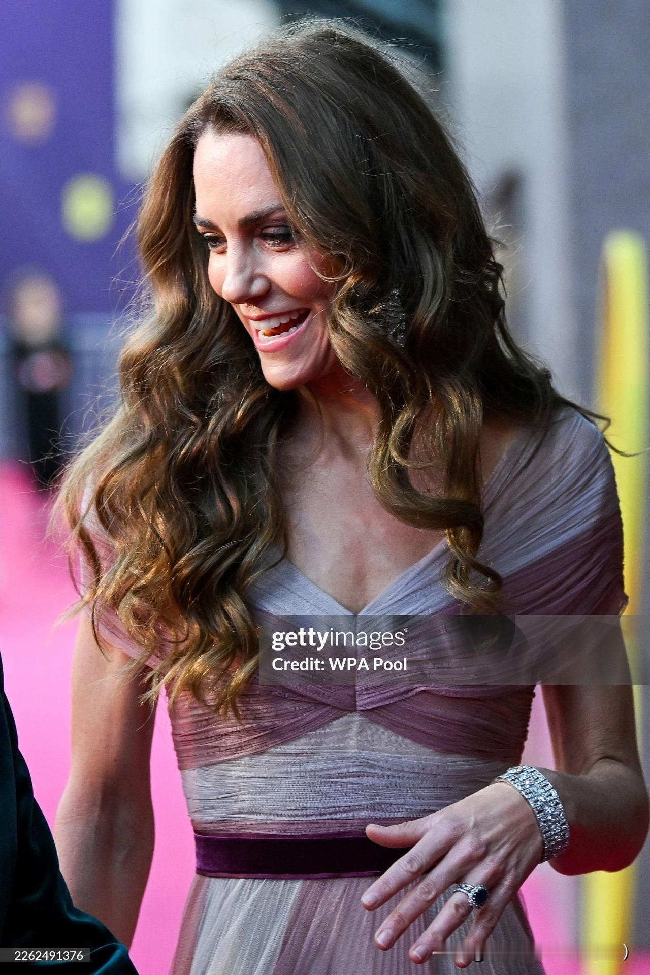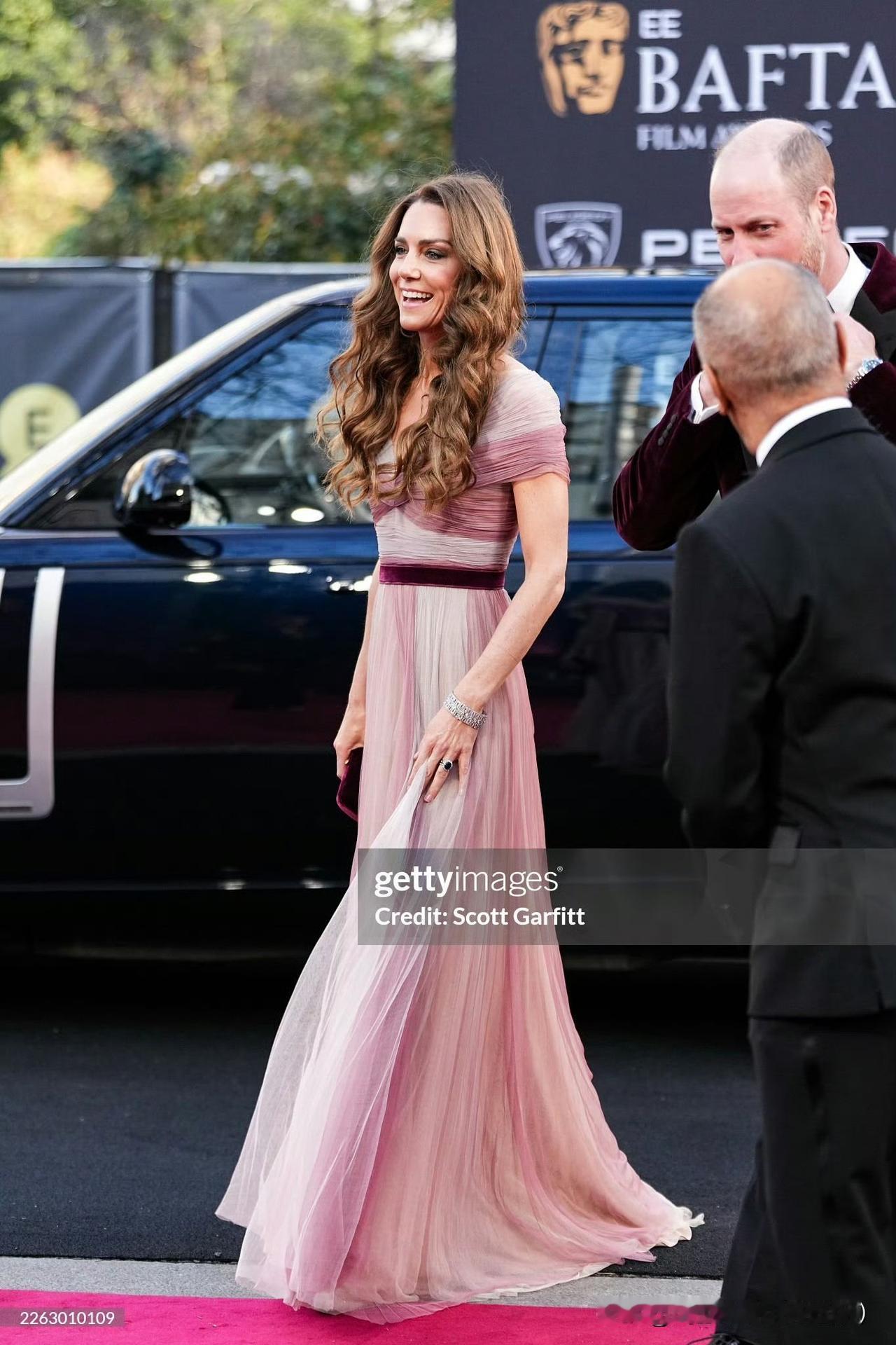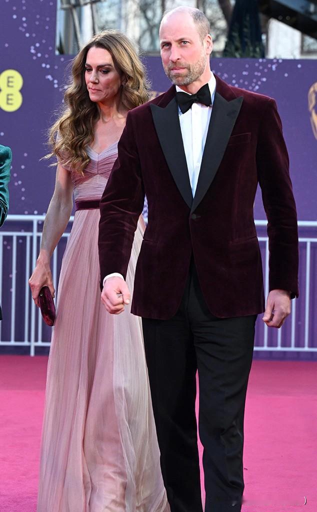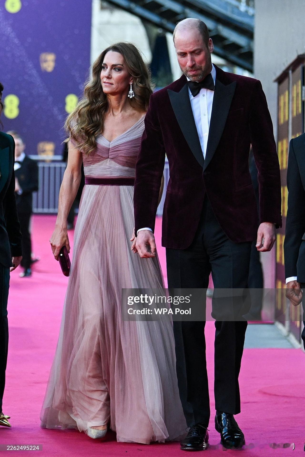 渐变粉礼服太惊艳!凯特王妃和威廉王储在伦敦出席第79届英国电影学院奖颁奖活动,旧衣重穿,比2019年气质更佳!渐变雪纺粉色礼裙,搭配Oscar de la Renta水晶高跟鞋,佩戴了霸气优雅的格蕾维尔吊灯钻石耳环和玛丽王后钻石手镯,bling bling的梦幻优雅!腰间的红丝绒和丈夫的红西装巧合撞衫,爱意都藏在细节!